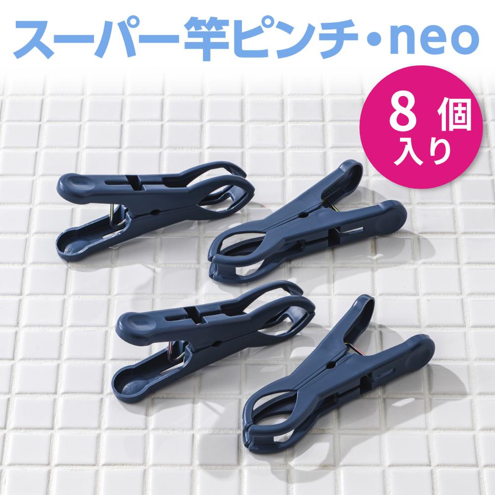 【ハンガーのズレも防ぐ】洗濯ばさみ スーパー竿ピンチ・neo 4個入×2パック 合計8個 | スーパー竿ピンチ 56×130×24mm 厚い洗濯物もはさめる竿用ピンチ 洗濯ばさみ 洗濯ピンチ 竿 ストッパー 洗濯 屋外 便利 便利グッズ セット コンパクト 毛布 タオルケット バスタオル
