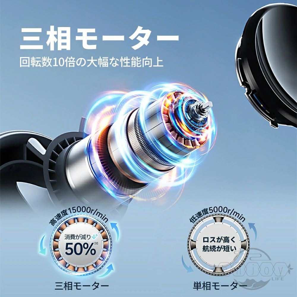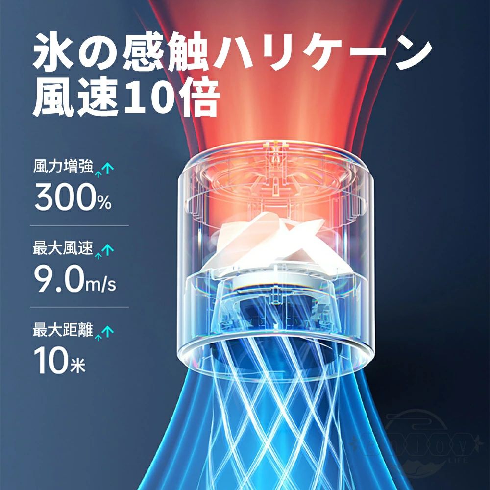 商品情報素材バッテリー容量:1800mAh重量:208g消費電力:5Wサイズ:59*61*157mm風量:120段階調整 【ブラシレスモーター設計の新技術 ・爆発する強風!】当社の手持ち扇風機の最高回転速度は通常の個人用扇風機の3倍で、最大15000 RPMに達します。最大風速は9m/sに達することもあります。三相ブラシレスモーターと1800mAhバッテリーの組み合わせにより、風速、パワー、耐久性が大幅に向上します。1回の充電で3〜8時間冷却できます。 このトルボファンの本体は高度な酸化技術で作られており、金属のような質感を与えています。 滑らかな円筒形のデザインは、快適な涼感を提供します。 【スクロールスイッチ・100段階の風速調節】1〜120まで風速をカスタマイズでき、様々なシーンでの風力ニーズに応えます。強力なモーターを備えたタービン構造を採用し、吸い込んだ熱気を急速に圧縮して冷却し、冷風に変えて吹き出します。 これにより、暑い日に瞬時に冷却されます。 【LED 風力発電デジタル表示 ・ バッテリー残量】小型扇風機には高解像度のデジタル表示画面が装備されており、現在の風速とバッテリー残量を表示できるため、ファンの残量を心配する必要はもうありません。 いつでもバッテリー残量を確認でき、 このミニ扇風機のバッテリーが少なくなった場合は、事前に充電を手配できるため、旅行のたびに涼しいパートナーとなることが保証されます。