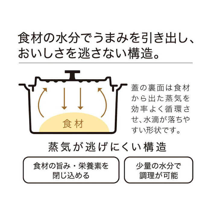 IH対応 卓上鍋食材の水分で旨みを引き出し、おいしさを逃さない。軽くて使いやすいアルミ製。鉄鋳物より軽くて落としても割れにくいアルミ製です。汚れを落としやすく傷つきにくいセラミック加工。ない外面・本体・フタにもコーティングされています。 290×240×150mm