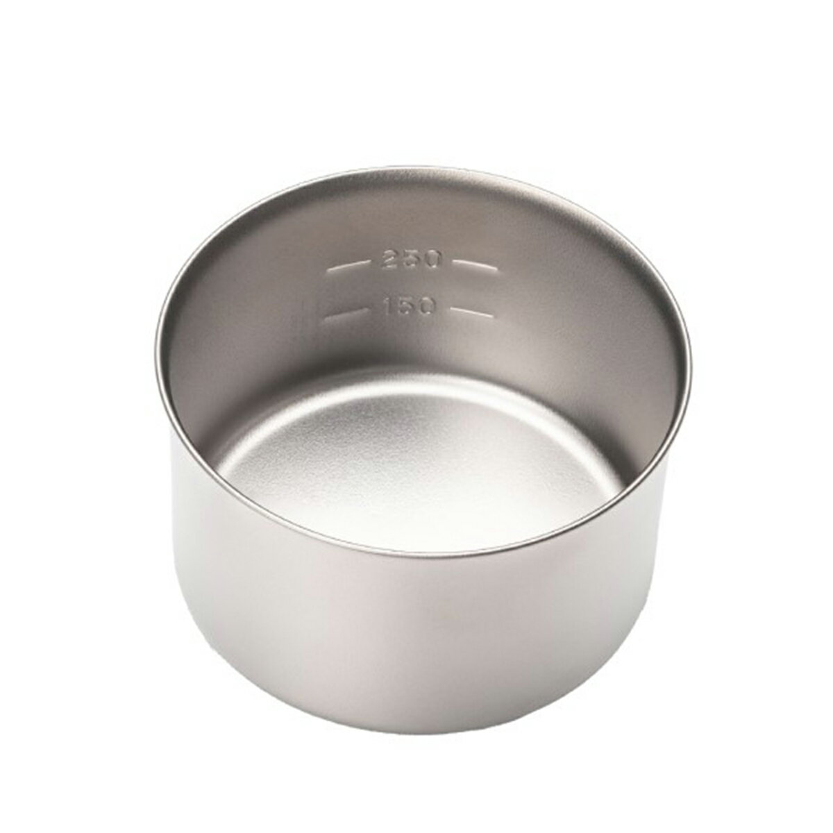 「Ti 400FD Cup」のハンドルを取り除く事で16gの軽量化別売りの世界初アウトドア用難燃シリコンリング「Flameproof Sil.RING M」を使用する事でハンドルレスでも快適に使用可能。 サイズ:外径102×内径95×深さ58mm容量:400ml(目盛付き)質量:34g素材:純チタン(国内製造)生産国:日本