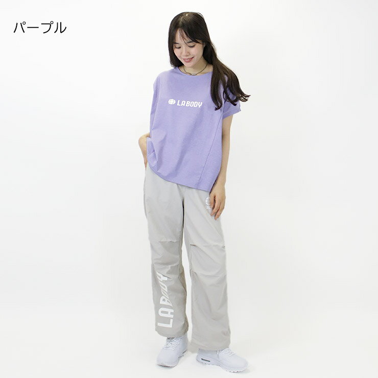 LABODY ICONIC イージードルマントップス Tシャツ ドライ 吸水速乾 レディース ゆったり エクササイズ フィットネス ジム スポーツ ダンス ヨガ ウェア ブラック ピンク パープル