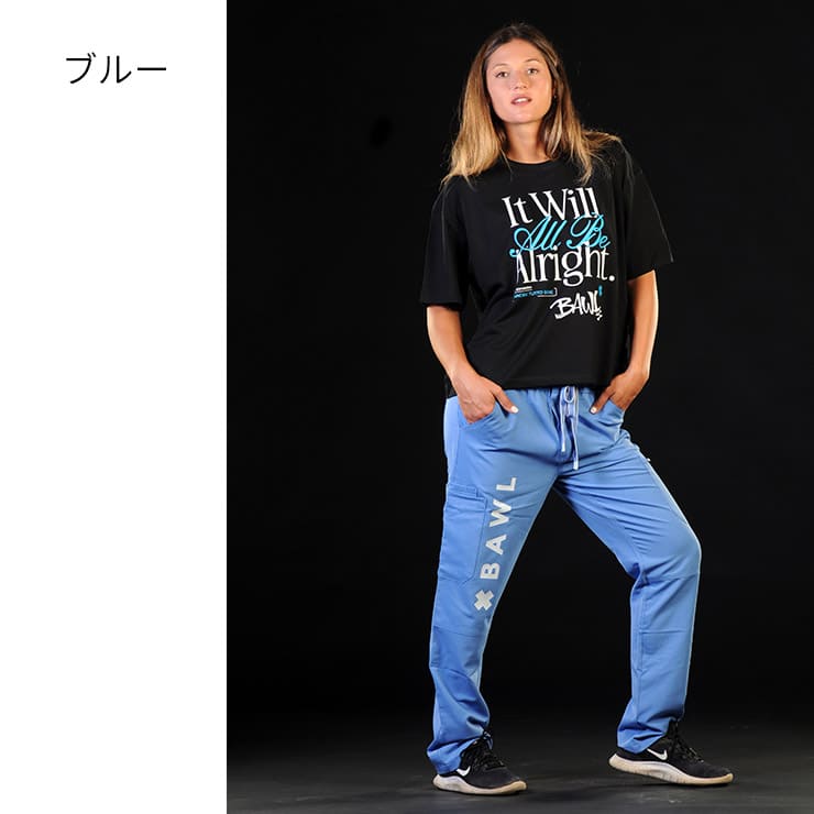 BAWL ボウル 正規品 パンツ カーゴ ジョガー レディース ストレッチ イージーケア エクササイズ フィットネス ジム スポーツ ダンス ヨガ ウェア ブルー グリーン