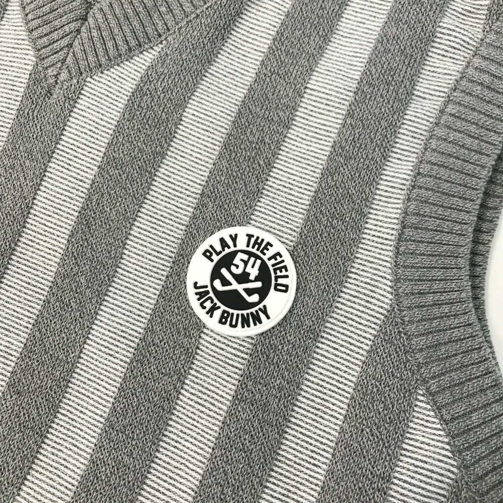 JACK BUNNY ジャックバニー Vネック ニットベスト ストライプ柄 グレー系 1 【中古】ゴルフウェア レディース