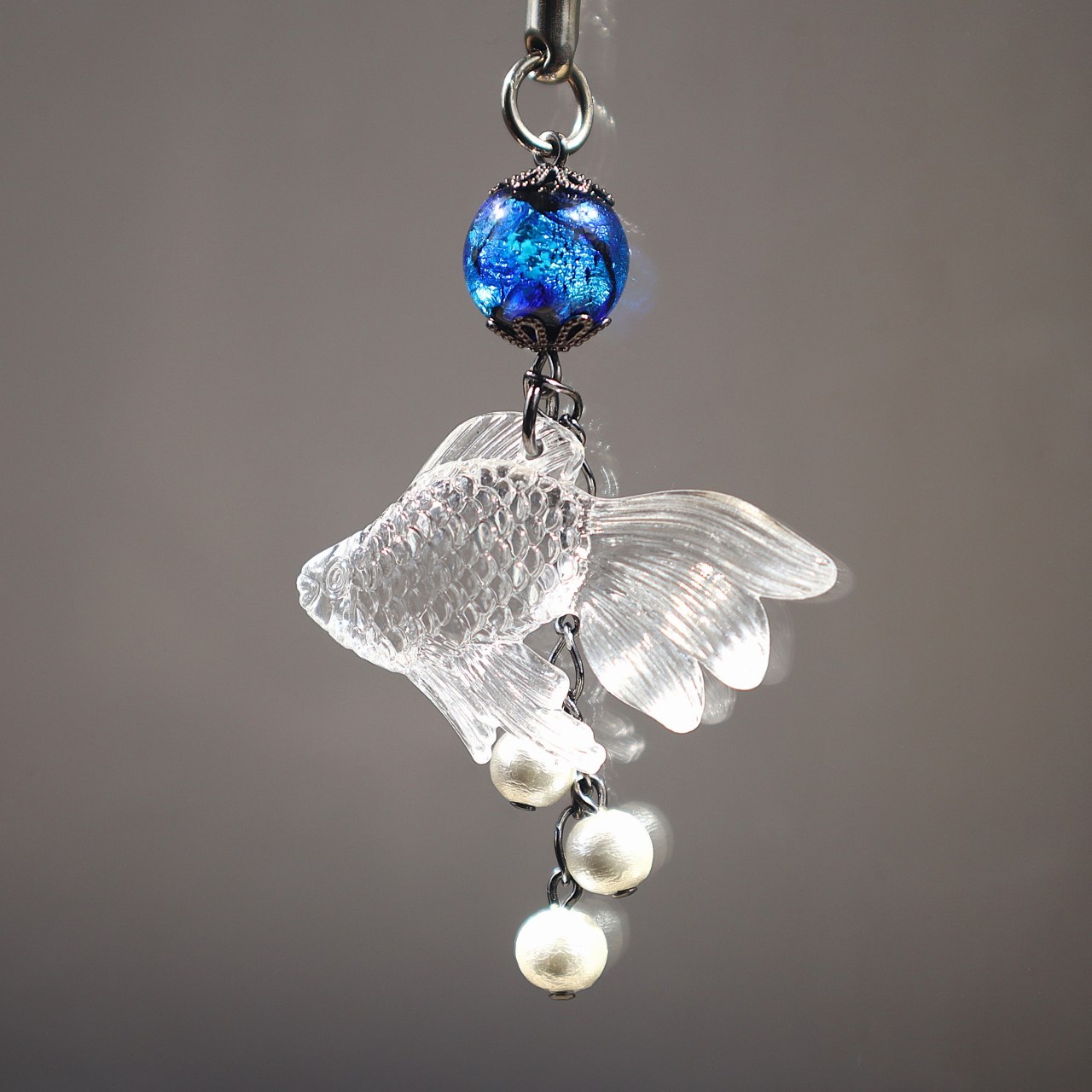 【高級ほたる玉根付】 金魚がぷくぷくと泳ぐような、涼やかな印象の根付です。 装いや行事にそっと寄り添う、ユニセックスな和小物。 バッグチャームとしてもお使いいただけます。 金魚チャームは、透明感のある高品質アクリル製。氷細工のように光を返します。 通常はクリスタルガラスや天然素材のみで制作しますが、この金魚は特別に採用しました。 国産のコットンパールで、水の中に浮かぶような軽やかさを表現しています。 ・最も多く選ばれてきた人気色、濃いブルー。品薄の際はどうかご容赦ください。 【ガラス職人が目利きしたほたる玉】 大好きな沖縄に作家として関わりたい。 その思いから、那覇国際通りの老舗宝飾店などを通じて、ほたる玉を仕入れています。 とんぼ玉の製作過程で、銀箔や銀澄を封入すると、「ほたる玉」と呼ばれるようになります。 タカシが作るとんぼ玉と同じ「バーナーワーク(ランプワーク)」の技法で作られています。 記録によると、ほたる玉は1470年代のベネチア、1950年代の大阪でも作られていました。 「煌めくビーズが南国に映える」として、沖縄では観光土産として親しまれています。 ホタルガラスの名でも知られ、今では琉球ガラスとともに、人気の記念品になりました。 沖縄のショップに並ぶ前に、特に美しいものだけを厳選しました。その価値を、あなたの目と手で感じてください。 【夜光ほたる玉・濃いブルー】 海を思わせる深いブルー。 日中に光を蓄え、夜にそっと灯る、蓄光のほたる玉です。 さりげなく、蛍のように情緒豊かに。 気づかれたら、ちょっと嬉しい小さな魔法です。 【大切な人への贈り物に】 誕生日や記念日のプレゼント、海の雰囲気をまとった特別なお土産に。 「こんな洒落た工芸品を探してくれたの?」と、思いがけないサプライズに笑顔がこぼれます。 その美しさに惹かれてご購入くださる方の約3割は男性です。 【総合レビュー4.9以上の満足度】 スタジオ技は作家直売の店。 タカシが一点ずつ丁寧に組み上げています。 心を込めたガラスジュエリーをお届けします。 【スペック】 ハンドメイドほたる玉 ( 手作り ガラス細工 ) 直径約12mm 総重量約8g 全長約15cm(飾り7cm) 金魚チャーム幅約4cm コットンパール(新興真珠) 根付け紐(レーヨン) 装いにあわせて選べる、趣の異なる色もご覧いただけます。ペアの贈り物としてもお勧めです。 大きめホタル玉の、揃いのかんざしもご用意しています。 蜻蛉玉の根付は、ご家族へのバースデープレゼントとして人気です。お母さんお父さんへの感謝を込めて、母の日父の日にも。 This handmade charm features a traditional tonbo-dama (tombo glass bead) especially popular in Okinawa (Ryukyu), Japan. It can be used as a phone case charm, kimono obi decoration, bag charm and more. Perfect for anyone who loves Japanese aesthetics, this accessory suits all ages and genders — ideal for birthdays, Mother’s Day, Father’s Day, or as a travel keepsake. Each lampworked glass bead is carefully selected and assembled by StudioWAZA, as part of our Hotaru Glass Jewelry Collection. 著作権:STUDIO技の作品・画像・文章は、すべて廣瀬喬が発案し、権利を所有しています。 かんざし、ネックレス、ブレスレット、ピアス、イヤリング、羽織紐、帯飾り、ストラップなど、すべてオリジナル作品としてご用意しています。 日本全国どこへでも、送料無料でお届けしております。
