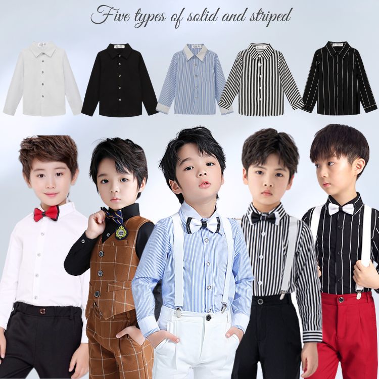 【送料無料】100%綿 子ども ワイシャツ 子供シャツ ホワイト ブラック ブルー ストライプ 子供 yシャツ長袖 白シャツ 黒シャツ 卒園式 入園式 入学式 卒業式 フォーマル 男の子 仮装 シミラールック キッズ (90 100 110 120 130 140 150 160 170) (男女兼用)