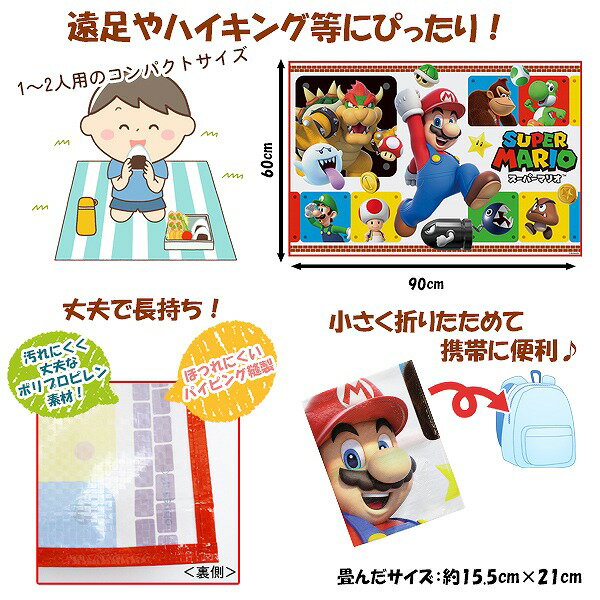 スーパー マリオ レジャーシート (S) 90cm × 60cm 1人用 2人用 遠足 アウトドア ピクニック プール 子供 運動会 お花見 メール便送料無料