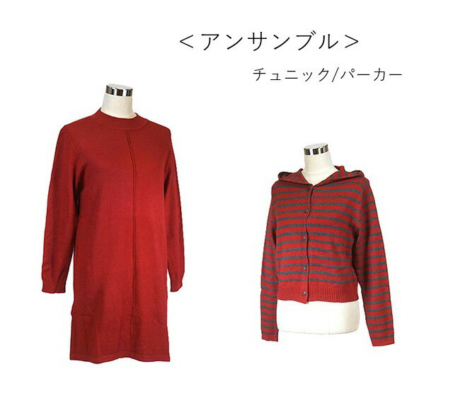 ■詳細■ カジュアルすぎない 大人配色アンサンブル ボーダー柄のパーカーとチュニックの ニットアンサンブル。 長め丈でヒップまでカバー。 パーカーを脱いだり着たり、 寒暖差の気になる日のお出かけにも活躍します。 <アンサンブル> ●パーカー ●チュニック それぞれでも着られるので 着回し抜群アイテム! □手洗いOK ※大手通販商品のアウトレット(廃番)商品です。 初期不良以外のご返品はお受け致しかねますので ご了承の上お買い求め下さいませ。 ■カラー■ ・レッド系 *ご注意ください* お使いの環境により画面上と実物では 多少色具合が異なって見える場合がございます。 ■サイズ■ 平置き採寸 ●パーカー M:身幅49/肩幅39/前着丈47/袖丈56 L:身幅52/肩幅40/前着丈47/袖丈56.5 LL:身幅55/肩幅41/前着丈48/袖丈57 3L:身幅58/肩幅42/前着丈48/袖丈57.5 4L:身幅61/肩幅43/前着丈49/袖丈58 5L:身幅64/肩幅44/前着丈49/袖丈58.5 ●チュニック M:身幅48/肩幅38/前着丈80/袖丈55 L:身幅51/肩幅39/前着丈80/袖丈55.5 LL:身幅54/肩幅40/前着丈81/袖丈56 3L:身幅57/肩幅41/前着丈81/袖丈56.5 4L:身幅60/肩幅42/前着丈82/袖丈57 5L:身幅63/肩幅43/前着丈82/袖丈57.5 ※裁断・縫製により多少誤差が生じます。 ご了承下さい。 ■素材■ 品質/レーヨン50%・ポリエステル32%・ナイロン18% * 商品によって柄の出方が異なる場合があります。