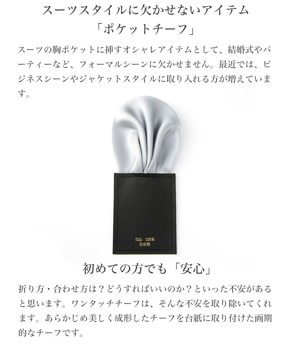 ポケットチーフ 挿すだけ ワンタッチ 日本製 パフド 挿すだけ 台紙付き シルク100% 結婚式 披露宴 冠婚 礼装 正装 オシャレ