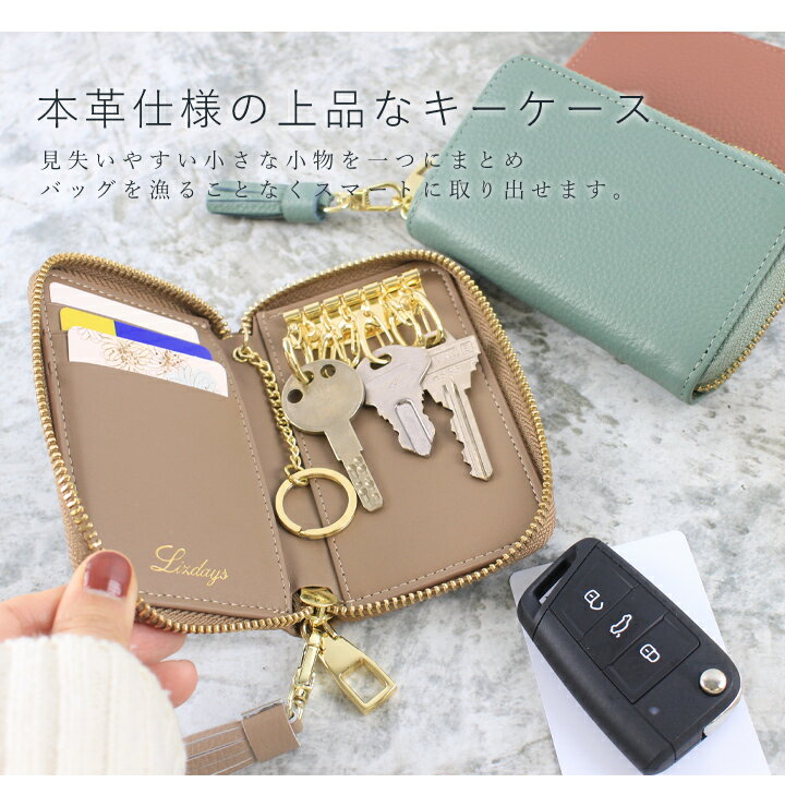 【MAX1000円offクーポン】【上質牛革 ・トップレザー使用】キーケース スマートキー キーケース レディース メンズ カード入れ 本革 車 お揃い パスケース ギフト プレゼント 6連 マルチケース カードキー シンプル カバー タッセル チャーム付き リズデイズ liz06