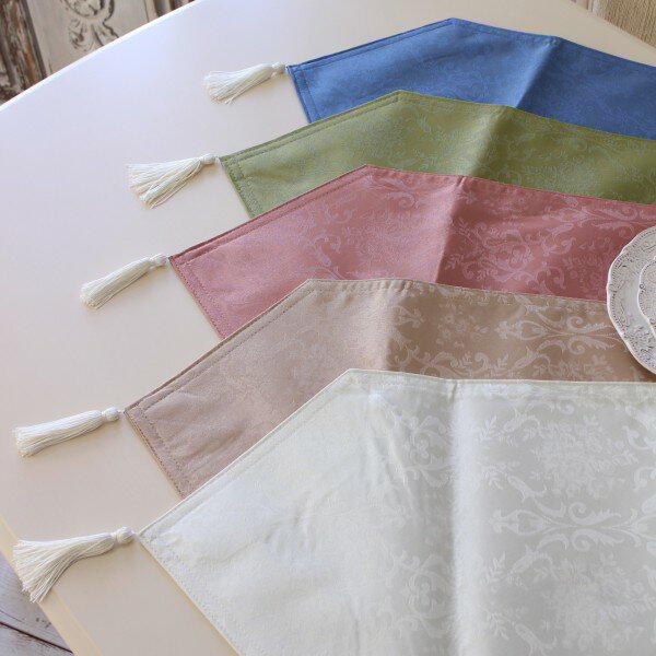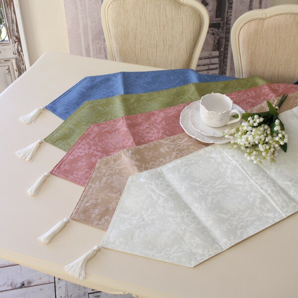 テーブルランナー 撥水 布製 洋風 30×230cm ダマスクローズ ホワイト ローズ グリーン ブラウン ブルー テーブルセンター はっ水 ダマスク柄 薔薇 ヨーロピアン おしゃれ かわいい 花柄 敷物