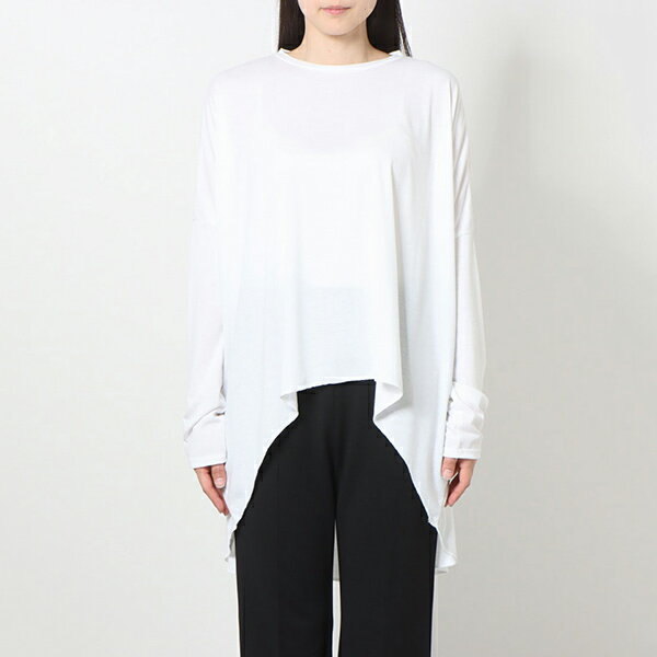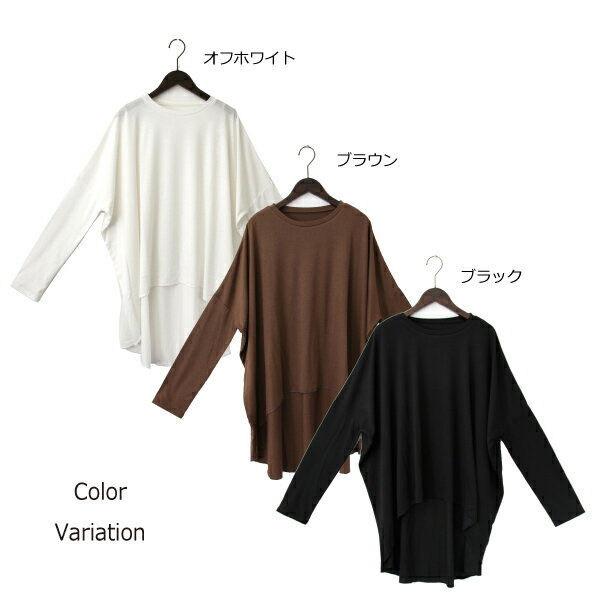 ロンT Tシャツ カットソー テールカット オーバーサイズ クルーネック 無地 長袖 トップス レディース オフホワイト ブラウン ブラック