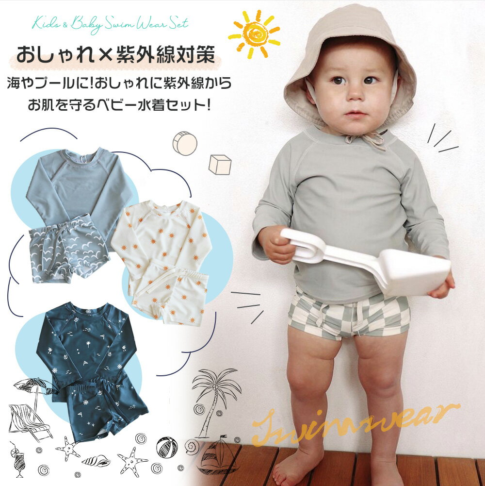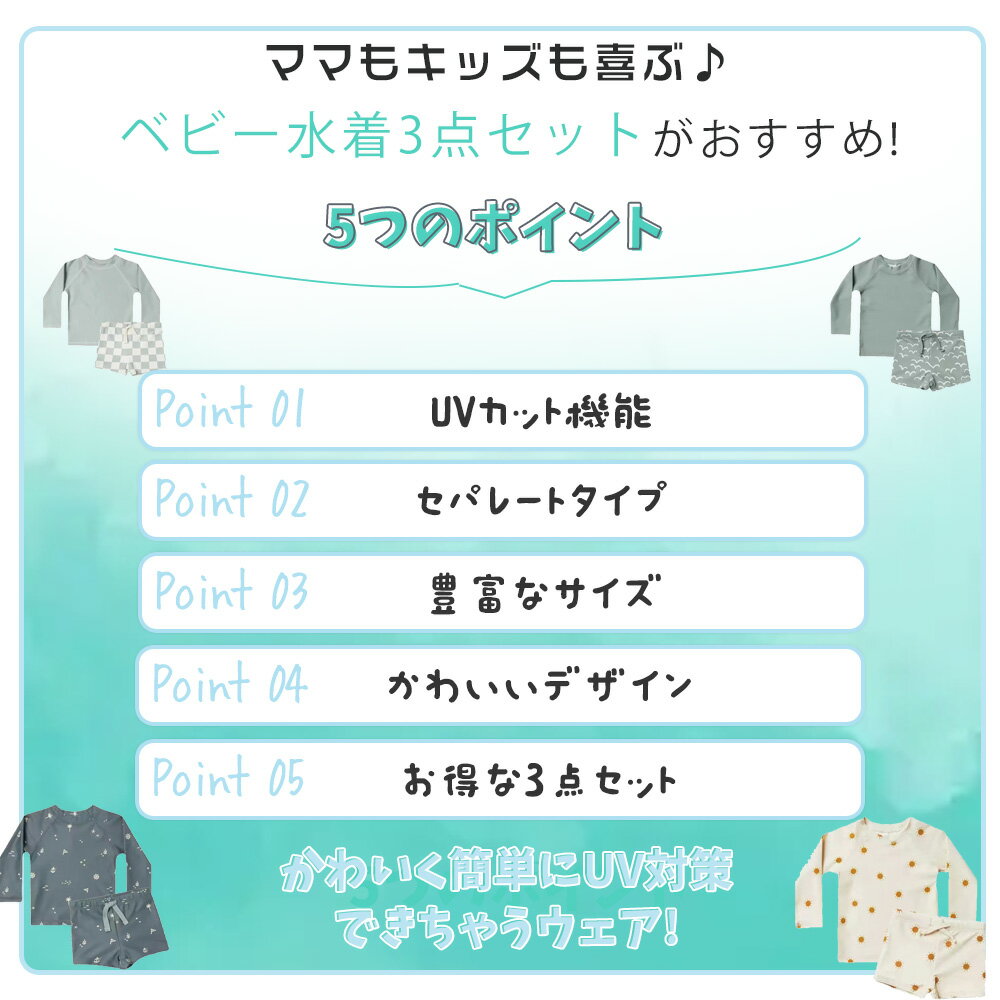 【3点セット★キャップ付き】ベビー 水着 男の子 キッズ 保育園 上下セット ラッシュガード 長袖 3点セット セパレート ベビー水着 男の子用水着 男児 子供用 こども キッズ 子供 ベビー服 幼稚園 ショートパンツ 水遊び プール 子供 みずぎ キャップ付き