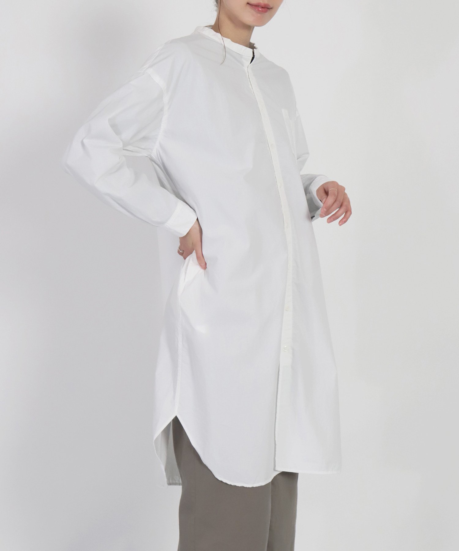 【SALE/55%OFF】D.M.G. コットンタイプライター スタンドカラーチュニック ドミンゴ ワンピース・ドレス シャツワンピース ホワイト【送料無料】