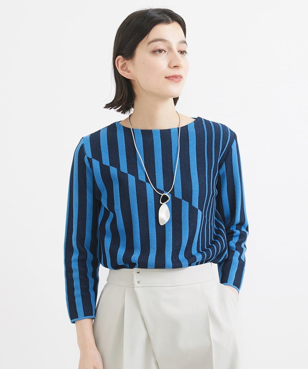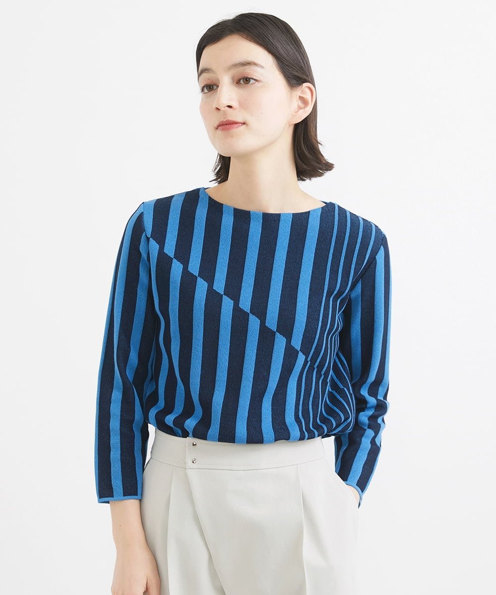 【SALE/50%OFF】GEORGES RECH(小さいサイズ) ストライプダブルジャカードニット メゾンドゥサンク トップス ニット ブルー ブラック【送料無料】