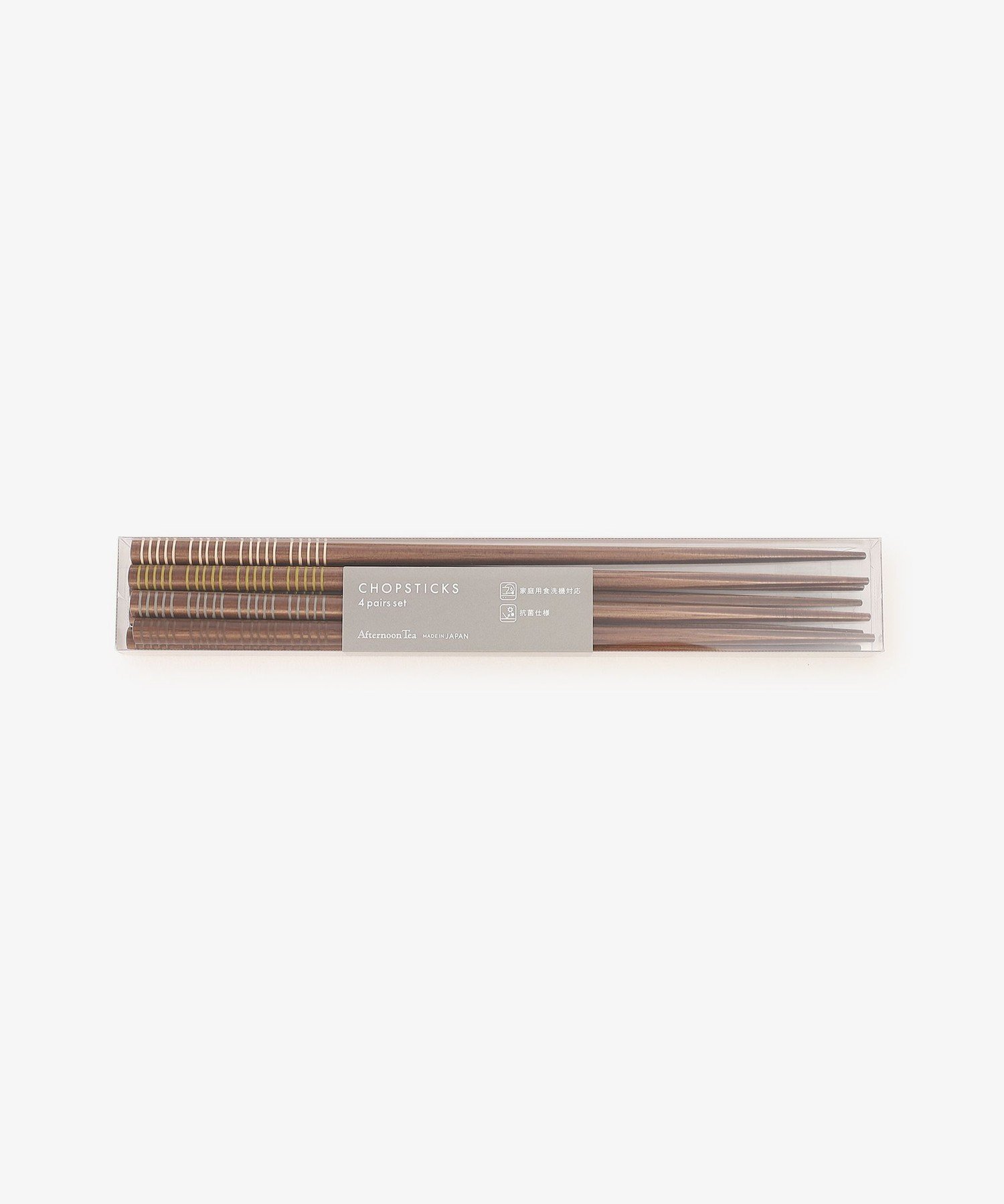 Afternoon Tea LIVING(アフタヌーンティー・リビング)若狭塗抗菌糸巻き箸4膳セット定番の抗菌箸の4膳セット。リニューアルしての登場です。インテリアにも馴染むブラウンをベースに、「糸巻き」という技法で個々のカラーを表現しました。ご家族それぞれで色別に使い分けたり、来客用に用意しておいたりと、ひとセット持っておくとあらゆるシチュエーションで重宝しそうです。細かいものをつかみやすい、先細加工をしているのも特徴。そのほか家庭用食洗器にも対応しており、日常使いに便利です。【若狭塗】若狭塗は福井県小浜市で作られる約400年の歴史をもつ漆器です。貝殻や卵の殻を埋め込み、金箔などをちりばめてその上に、漆を幾重にも重ね、研ぎ出していく美しい模様が特徴です。近年は確かな技術に加え、抗菌加工が施されているものなど機能面にも配慮され、多彩なデザイで、現代のライフスタイルに合わせたものが多く生み出されています。ディッシュウォッシャー〇抗菌加工は全ての菌に効果があるわけではありません。食酢、レモン等酸性の強いものに触れると変質し、つやがなくなることがあります。付属の注意書きをよく読みお使いください。付属の注意書きをよく読みお使いください。1点ごとに柄の出方が違うことがあります。型番:JE63-24105373-1b-1 MT0949【採寸】長さ22.5cm×4商品のサイズについて【商品詳細】日本製素材:天然竹(表面、ポリエステルウレタン塗装)抗菌剤:銀系無機抗菌剤サイズ:-※画面上と実物では多少色具合が異なって見える場合もございます。ご了承ください。商品のカラーについて 【予約商品について】 ※「先行予約販売中」「予約販売中」をご注文の際は予約商品についてをご確認ください。■重要なお知らせ※ 当店では、ギフト配送サービス及びラッピングサービスを行っておりません。ラッピング・ギフト配送について同時に複数の商品を注文された場合メーカー希望小売価格についてご利用ガイドAfternoon Tea LIVING(アフタヌーンティー・リビング)若狭塗抗菌糸巻き箸4膳セット定番の抗菌箸の4膳セット。リニューアルしての登場です。インテリアにも馴染むブラウンをベースに、「糸巻き」という技法で個々のカラーを表現しました。ご家族それぞれで色別に使い分けたり、来客用に用意しておいたりと、ひとセット持っておくとあらゆるシチュエーションで重宝しそうです。細かいものをつかみやすい、先細加工をしているのも特徴。そのほか家庭用食洗器にも対応しており、日常使いに便利です。【若狭塗】若狭塗は福井県小浜市で作られる約400年の歴史をもつ漆器です。貝殻や卵の殻を埋め込み、金箔などをちりばめてその上に、漆を幾重にも重ね、研ぎ出していく美しい模様が特徴です。近年は確かな技術に加え、抗菌加工が施されているものなど機能面にも配慮され、多彩なデザイで、現代のライフスタイルに合わせたものが多く生み出されています。ディッシュウォッシャー〇抗菌加工は全ての菌に効果があるわけではありません。食酢、レモン等酸性の強いものに触れると変質し、つやがなくなることがあります。付属の注意書きをよく読みお使いください。付属の注意書きをよく読みお使いください。1点ごとに柄の出方が違うことがあります。型番:JE63-24105373-1b-1 MT0949【採寸】長さ22.5cm×4商品のサイズについて【商品詳細】日本製素材:天然竹(表面、ポリエステルウレタン塗装)抗菌剤:銀系無機抗菌剤サイズ:-※画面上と実物では多少色具合が異なって見える場合もございます。ご了承ください。商品のカラーについて