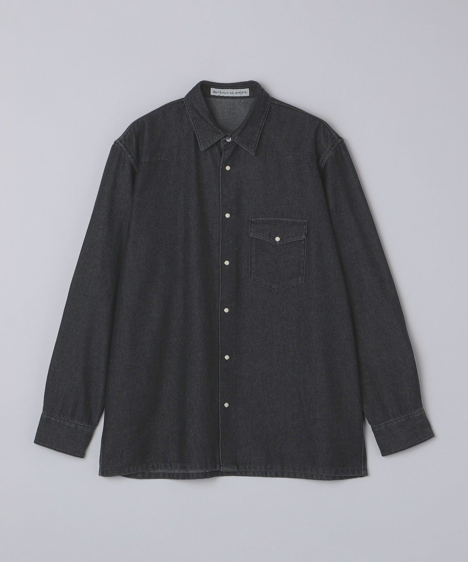 【SALE/50%OFF】SHIPS MEN BATEAUX DE SHIPS: レギュラーカラー ウエスタン デニム シャツ シップス トップス シャツ・ブラウス ブラック ブルー【送料無料】