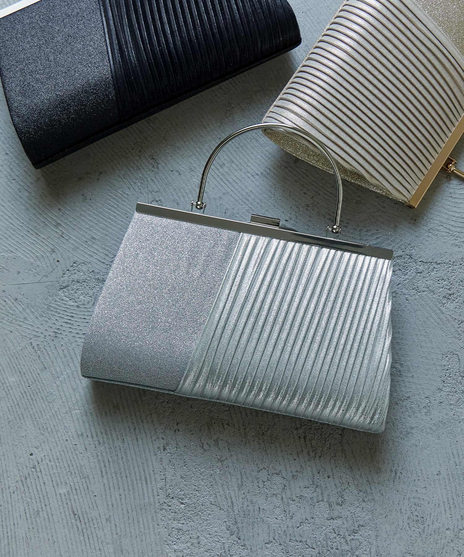 bflat(ビーフラット)ラメサテンプリーツ切替がま口ハンドバッグ煌めくラメ生地とサテンプリーツを切り替えたがま口クラッチバッグ。金具のハンドルでハンドバッグ感覚でもお持ちいただけます。取り外し可能なチェーン付きでショルダーでも使える2way仕様。長財布も入る大きめのサイズ感なので、荷物の少ない方ならこれひとつでお出かけOK。オススメシーン結婚式・二次会・披露宴・お呼ばれ・成人式・同窓会女子会・2次会・謝恩会・パーティー・デート・演奏会発表会など多様なシーンのコーディネートに使えます。【備考】・内ポケット×1・付属品:120cmチェーン型番:na0070006025-51-51 MY5697【採寸】サイズ幅(上)幅(下)高さマチF21.5cm25cm15cm5cm商品のサイズについて【商品詳細】中国素材:表地 ポリエステル100%サイズ:F※画面上と実物では多少色具合が異なって見える場合もございます。ご了承ください。商品のカラーについて 【予約商品について】 ※「先行予約販売中」「予約販売中」をご注文の際は予約商品についてをご確認ください。■重要なお知らせ※ 当店では、ギフト配送サービス及びラッピングサービスを行っておりません。ラッピング・ギフト配送について同時に複数の商品を注文された場合メーカー希望小売価格についてご利用ガイドbflat(ビーフラット)ラメサテンプリーツ切替がま口ハンドバッグ煌めくラメ生地とサテンプリーツを切り替えたがま口クラッチバッグ。金具のハンドルでハンドバッグ感覚でもお持ちいただけます。取り外し可能なチェーン付きでショルダーでも使える2way仕様。長財布も入る大きめのサイズ感なので、荷物の少ない方ならこれひとつでお出かけOK。オススメシーン結婚式・二次会・披露宴・お呼ばれ・成人式・同窓会女子会・2次会・謝恩会・パーティー・デート・演奏会発表会など多様なシーンのコーディネートに使えます。【備考】・内ポケット×1・付属品:120cmチェーン型番:na0070006025-51-51 MY5697【採寸】サイズ幅(上)幅(下)高さマチF21.5cm25cm15cm5cm商品のサイズについて【商品詳細】中国素材:表地 ポリエステル100%サイズ:F※画面上と実物では多少色具合が異なって見える場合もございます。ご了承ください。商品のカラーについて