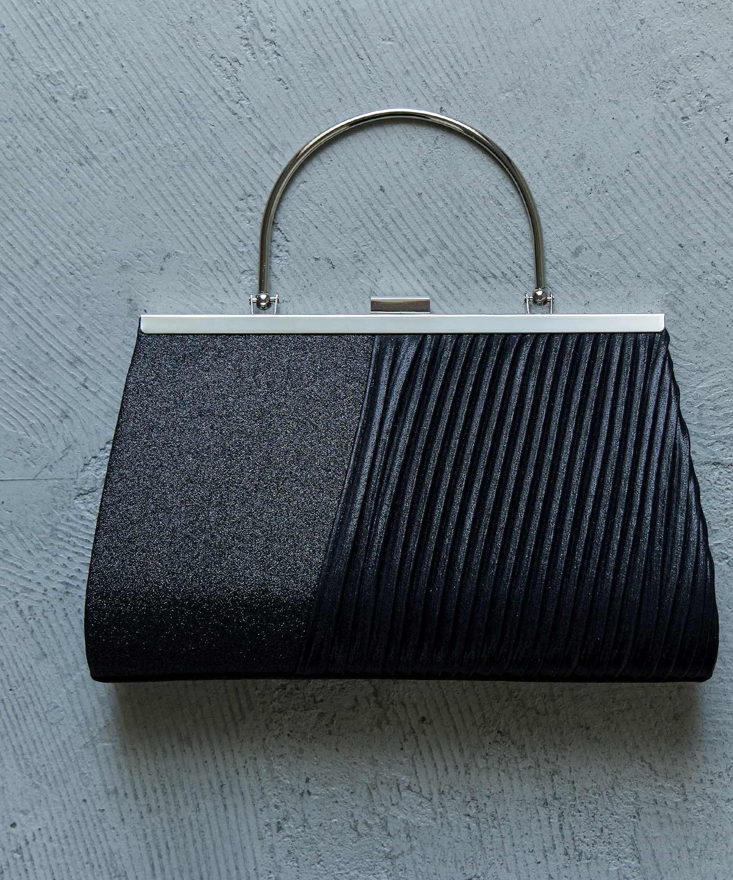niana ラメサテンプリーツ切替がま口ハンドバッグ ビーフラット バッグ クラッチバッグ ブラック シルバー ベージュ【送料無料】