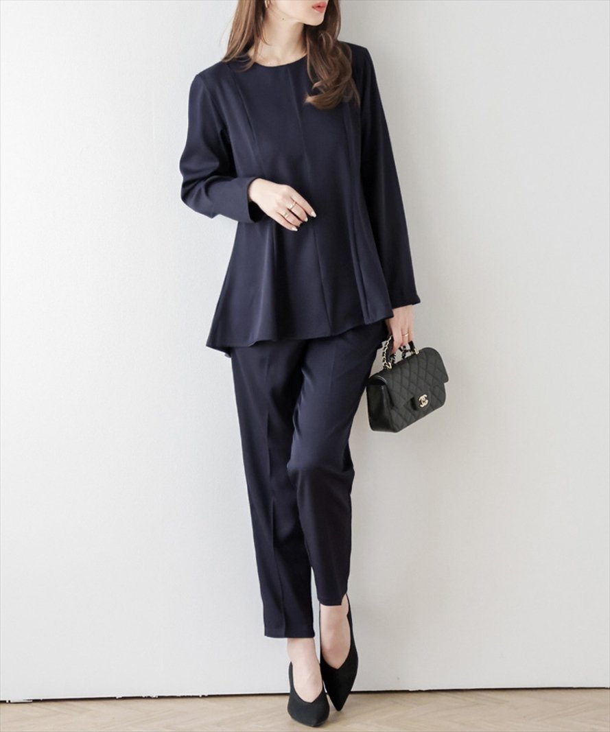 Lajour(ラジュール)ペプラムトップス+パンツ セットアップきちんと感と程よい華やかさが魅力頼れるセットアップほんのり広がったペプラムシルエットがフェミニンなセットアップ。美シルエットのセンタープレスパンツは細見せ効果も◎それぞれ単品でも着回しもしやすく、セットコーデで幅広いシーンで活用いただけるセットアイテムです。Point01ペプラムシルエットでお腹まわりもカバー◎ほんのり広がったペプラムシルエットで、気になるお腹やヒップもカバーしてくれるので体型カバーにも。Point02すっきり見えが叶うテーパードパンツヒップは程よくゆとりをもたせ、バックゴムなので着脱も楽ちん。程よいヌケ感を生むアンクル丈がすっきり細見え効果を発揮。■Fabricとろみのある落ち感素材で、シワになりにくいツイル生地さらりとした落ち感のある滑らかな手触り。洗濯機で簡単に洗えるウォッシャブル生地を使用。手軽にお洗濯できるので、いつも清潔にご着用いただけます。クリーニング代も抑えられて経済的。■ご自宅で洗える!お洗濯の際は、ネットに入れて「弱水流」または「手洗いコース」等、もしくは手洗いでやさしく押し洗いでお手入れしていただけます。---------------------透け感:なし裏地:なし厚さ:普通伸縮性:なし---------------------型番:lss24-se119-004-503 NR8243【採寸】トップス【M】バスト:95cm / 肩幅:37cm / 総丈:67/73cm / 袖丈:55cm / 裾幅:80cm【L】バスト:99cm / 肩幅:38cm / 総丈:69/75cm / 袖丈:56cm / 裾幅:82cmボトムス【M】ウエスト:62cm / ヒップ:96cm / もも幅:30cm / 裾幅:15cm / 股上:31cm / 股下:63cm / 総丈:92cm【L】ウエスト:66cm / ヒップ:100cm / もも幅:31cm / 裾幅:16cm / 股上:32cm / 股下:64cm / 総丈:94cm商品のサイズについて【商品詳細】中国素材:ポリエステル100%サイズ:M、L※画面上と実物では多少色具合が異なって見える場合もございます。ご了承ください。商品のカラーについてLajour(ラジュール)ペプラムトップス+パンツ セットアップきちんと感と程よい華やかさが魅力頼れるセットアップほんのり広がったペプラムシルエットがフェミニンなセットアップ。美シルエットのセンタープレスパンツは細見せ効果も◎それぞれ単品でも着回しもしやすく、セットコーデで幅広いシーンで活用いただけるセットアイテムです。Point01ペプラムシルエットでお腹まわりもカバー◎ほんのり広がったペプラムシルエットで、気になるお腹やヒップもカバーしてくれるので体型カバーにも。Point02すっきり見えが叶うテーパードパンツヒップは程よくゆとりをもたせ、バックゴムなので着脱も楽ちん。程よいヌケ感を生むアンクル丈がすっきり細見え効果を発揮。■Fabricとろみのある落ち感素材で、シワになりにくいツイル生地さらりとした落ち感のある滑らかな手触り。洗濯機で簡単に洗えるウォッシャブル生地を使用。手軽にお洗濯できるので、いつも清潔にご着用いただけます。クリーニング代も抑えられて経済的。■ご自宅で洗える!お洗濯の際は、ネットに入れて「弱水流」または「手洗いコース」等、もしくは手洗いでやさしく押し洗いでお手入れしていただけます。---------------------透け感:なし裏地:なし厚さ:普通伸縮性:なし---------------------型番:lss24-se119-004-503 NR8243【採寸】トップス【M】バスト:95cm / 肩幅:37cm / 総丈:67/73cm / 袖丈:55cm / 裾幅:80cm【L】バスト:99cm / 肩幅:38cm / 総丈:69/75cm / 袖丈:56cm / 裾幅:82cmボトムス【M】ウエスト:62cm / ヒップ:96cm / もも幅:30cm / 裾幅:15cm / 股上:31cm / 股下:63cm / 総丈:92cm【L】ウエスト:66cm / ヒップ:100cm / もも幅:31cm / 裾幅:16cm / 股上:32cm / 股下:64cm / 総丈:94cm商品のサイズについて【商品詳細】中国素材:ポリエステル100%サイズ:M、L※画面上と実物では多少色具合が異なって見える場合もございます。ご了承ください。商品のカラーについてこの商品は先行予約商品のため返品・交換対象外です詳細はこちら >>
