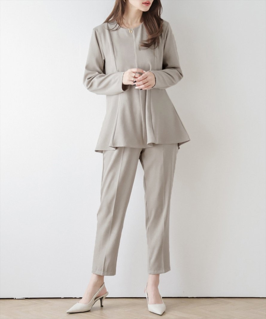 【SALE/42%OFF】La-gemme ペプラムトップス+パンツ セットアップ ラジュール スーツ・フォーマル セットアップスーツ ブラック ネイビー ベージュ【送料無料】