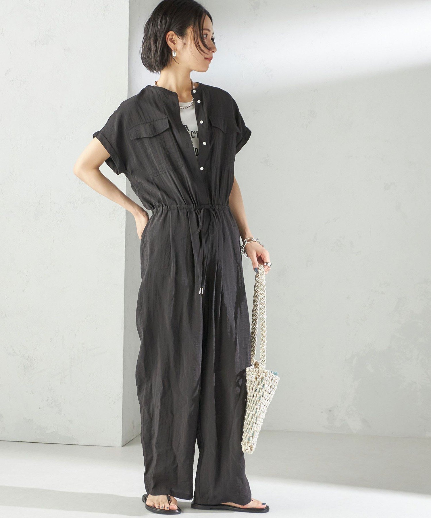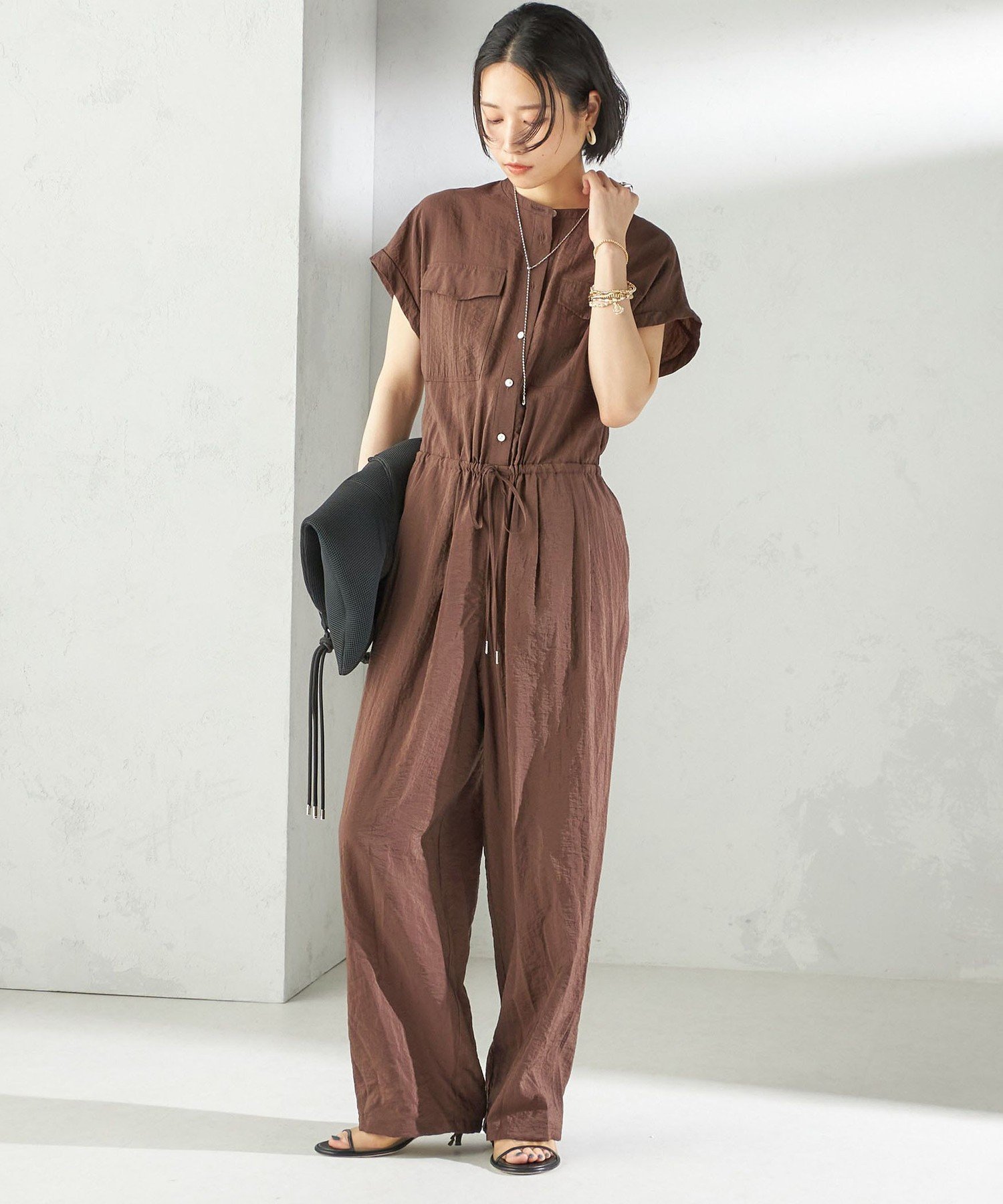 SHIPS(シップス)<手洗い可能>ダブル ポケット ミリタリー オールインワン-25SS-ラフに着こなせてサマになる、大人のミリタリーオールインワン■デザイン落ち感のある素材を活かした女性らしさ漂うミリタリーテイストのオールインワン。肩まわりをカバーするスリーブデザインで、幅広い体型の方にフィットするシルエットに仕上げました。ウエストはゴム仕様+共布ひも付きで調整可能。裾にも共布ひもを通しており、きゅっと絞ればシルエットのアレンジも楽しめます。■素材ナイロン×レーヨンにワッシャー加工を施したドライタッチの素材。肌離れが良く、暑い季節にもさらっと快適な着心地です。さりげない光沢感があり、カジュアルながらも上品な印象に仕上がります。シワも目立ちにくく、デイリー使いにも嬉しいイージーケア素材です。■コーディネート一枚でスタイリングが完成する優秀アイテム。足元は華奢なストラップサンダルで女性らしさを引き立てると◎小物やアクセサリーで抜け感をプラスすれば、こなれた大人カジュアルコーデに仕上がります。■お問い合わせ品番:314-95-0021-------------------------------------生地の厚み:中間伸縮性:やや有透け感:やや有光沢感:やや有ポケット:有水洗い:可-------------------------------------※【着丈】こちらの商品は、ウエストの切替までを計測しております。予めご留意下さい。※撮影環境により商品の色味が異なって見える場合がございます。商品のお色味は、物撮り画像をご参考にしてください。※末永く愛用頂く為に、アテンションタグを必ずご確認の上、着用又はお取り扱いください。※画像の商品はサンプルです。実際の商品と仕様、加工、サイズが若干異なる場合がございます。ブラック:165cmB77W57H85着用サイズ:ONESIZEブラウン:165cmB77W57H85着用サイズ:ONESIZE型番:314950021-28-99 PP0708【採寸】サイズ着丈身幅ゆきウエスト股上股下すそ周りもも周りヒップONE SIZE45.5cm59cm32cm72/101cm30.5cm67.5cm51cm75.5cm115cm商品のサイズについて【商品詳細】-素材:レーヨン60%、 ナイロン40%サイズ:ONE SIZE※画面上と実物では多少色具合が異なって見える場合もございます。ご了承ください。商品のカラーについてSHIPS(シップス)<手洗い可能>ダブル ポケット ミリタリー オールインワン-25SS-ラフに着こなせてサマになる、大人のミリタリーオールインワン■デザイン落ち感のある素材を活かした女性らしさ漂うミリタリーテイストのオールインワン。肩まわりをカバーするスリーブデザインで、幅広い体型の方にフィットするシルエットに仕上げました。ウエストはゴム仕様+共布ひも付きで調整可能。裾にも共布ひもを通しており、きゅっと絞ればシルエットのアレンジも楽しめます。■素材ナイロン×レーヨンにワッシャー加工を施したドライタッチの素材。肌離れが良く、暑い季節にもさらっと快適な着心地です。さりげない光沢感があり、カジュアルながらも上品な印象に仕上がります。シワも目立ちにくく、デイリー使いにも嬉しいイージーケア素材です。■コーディネート一枚でスタイリングが完成する優秀アイテム。足元は華奢なストラップサンダルで女性らしさを引き立てると◎小物やアクセサリーで抜け感をプラスすれば、こなれた大人カジュアルコーデに仕上がります。■お問い合わせ品番:314-95-0021-------------------------------------生地の厚み:中間伸縮性:やや有透け感:やや有光沢感:やや有ポケット:有水洗い:可-------------------------------------※【着丈】こちらの商品は、ウエストの切替までを計測しております。予めご留意下さい。※撮影環境により商品の色味が異なって見える場合がございます。商品のお色味は、物撮り画像をご参考にしてください。※末永く愛用頂く為に、アテンションタグを必ずご確認の上、着用又はお取り扱いください。※画像の商品はサンプルです。実際の商品と仕様、加工、サイズが若干異なる場合がございます。ブラック:165cmB77W57H85着用サイズ:ONESIZEブラウン:165cmB77W57H85着用サイズ:ONESIZE型番:314950021-28-99 PP0708【採寸】サイズ着丈身幅ゆきウエスト股上股下すそ周りもも周りヒップONE SIZE45.5cm59cm32cm72/101cm30.5cm67.5cm51cm75.5cm115cm商品のサイズについて【商品詳細】-素材:レーヨン60%、 ナイロン40%サイズ:ONE SIZE※画面上と実物では多少色具合が異なって見える場合もございます。ご了承ください。商品のカラーについて