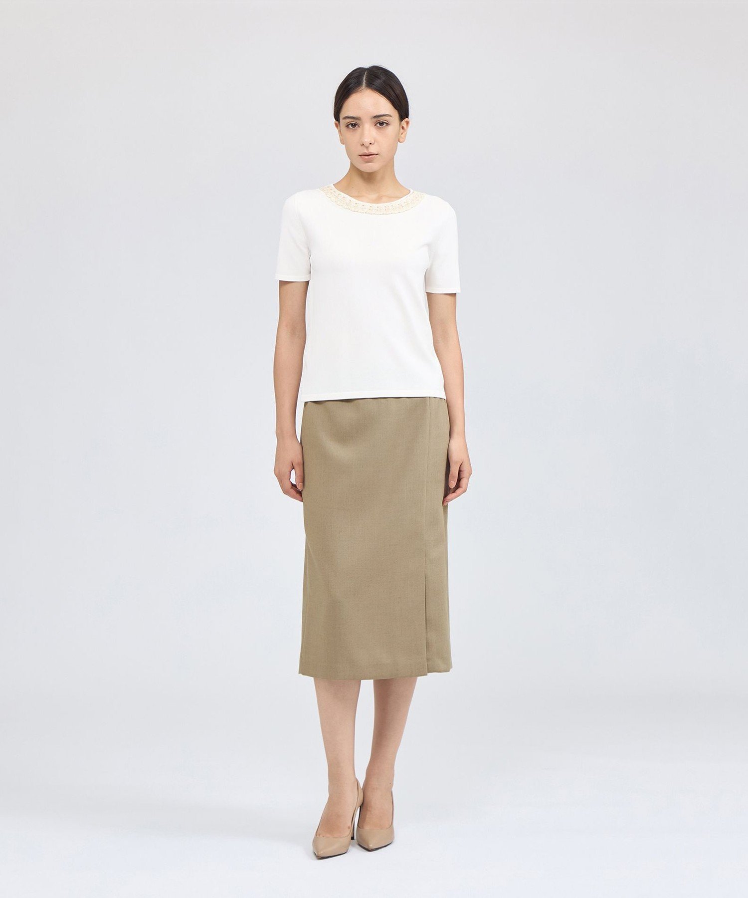EPOCA(エポカ)ドライストレッチ ニットプルオーバー【素材】ドレープ性としなやかなタッチを持ちあわせたレーヨンと、ドライな風合いが特徴のナイロンを掛け合わせたストレッチヤーンです。【デザイン】光沢のある太番手の糸とラメ糸で作ったトーションレースを襟元にあしらった半袖プルオーバーです。華やかさと上品さを兼ね備えたデザインで、同素材のカーディガン(品番:M5N22611)とのアンサンブルはもちろん、ジャケットインにも活躍する1枚です。ご自宅で手洗い可能です。洗濯表示に従ってお手入れしてください。透け感:オフホワイトややあり伸縮性:あり生地の厚さ:普通おすすめ着用期間:春、夏、秋※この商品はサンプルでの撮影を行っています。実際の商品とイメージ、仕様が異なる場合がございます。身長170B86W61H90着用サイズ:40型番:M5N23611---02-40 PT1027【採寸】サイズ総丈肩幅バスト袖丈裄丈4054cm37cm87cm21cm-商品のサイズについて【商品詳細】MADE IN JAPAN素材:レーヨン75% ナイロン23% ポリウレタン2%サイズ:40※画面上と実物では多少色具合が異なって見える場合もございます。ご了承ください。商品のカラーについてEPOCA(エポカ)ドライストレッチ ニットプルオーバー【素材】ドレープ性としなやかなタッチを持ちあわせたレーヨンと、ドライな風合いが特徴のナイロンを掛け合わせたストレッチヤーンです。【デザイン】光沢のある太番手の糸とラメ糸で作ったトーションレースを襟元にあしらった半袖プルオーバーです。華やかさと上品さを兼ね備えたデザインで、同素材のカーディガン(品番:M5N22611)とのアンサンブルはもちろん、ジャケットインにも活躍する1枚です。ご自宅で手洗い可能です。洗濯表示に従ってお手入れしてください。透け感:オフホワイトややあり伸縮性:あり生地の厚さ:普通おすすめ着用期間:春、夏、秋※この商品はサンプルでの撮影を行っています。実際の商品とイメージ、仕様が異なる場合がございます。身長170B86W61H90着用サイズ:40型番:M5N23611---02-40 PT1027【採寸】サイズ総丈肩幅バスト袖丈裄丈4054cm37cm87cm21cm-商品のサイズについて【商品詳細】MADE IN JAPAN素材:レーヨン75% ナイロン23% ポリウレタン2%サイズ:40※画面上と実物では多少色具合が異なって見える場合もございます。ご了承ください。商品のカラーについて