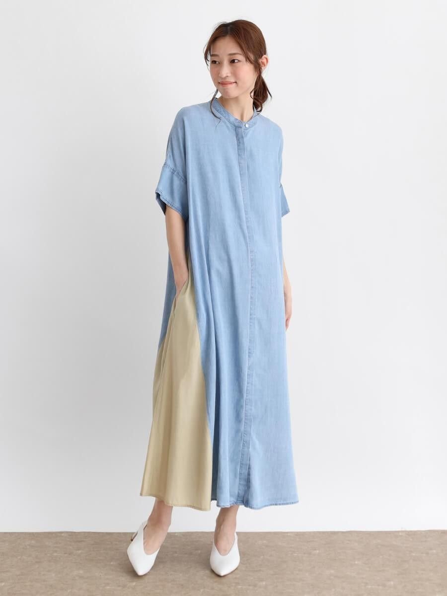LASUD(ラシュッド)ドッキングデザインテンセルデニムワンピース■両サイドに異素材をドッキングしたシャツワンピースが入荷しました。・サラッとしたドライタッチに柔らかな光沢感が上品な印象を出しているテンセルデニムを使ったシャツワンピース。・ドロップショルダーにゆったりとした身頃ながら生地の持つとろみでスッキリとしたシルエットを作っています。・両サイドの異素材が着こなしのアクセントに。ぱっと目を惹く印象的な1枚。・前を閉じた1枚着としての着こなしはもちろん、ボタンをあけて羽織としても活躍すること間違いなし。・着回し力が高く、1枚でスタイリングが完成する頼れるアイテムです。モデル:167cm※撮影画像は、光の当たり具合やお使いのモニター設定、お部屋の照明等により実際の商品と色味が異なる場合がございます。一番実物に近いお色味は生地画像でございます。9号(cm)着丈:126裄丈:46身幅:61型番:074114511-84-09 PU5177【採寸】商品のサイズについて【商品詳細】中国製素材:素材 | デニム部分 再生繊維(セルロース):100% 別布 レーヨン:55%,ポリエステル:45%透け感 | ライトブルー 一部あり伸縮性 | なし原産国 | 中国家庭洗濯 | 手洗い可ポケット | あり裏地 | なしサイズ:9号※画面上と実物では多少色具合が異なって見える場合もございます。ご了承ください。商品のカラーについて 【予約商品について】 ※「先行予約販売中」「予約販売中」をご注文の際は予約商品についてをご確認ください。■重要なお知らせ※ 当店では、ギフト配送サービス及びラッピングサービスを行っておりません。ラッピング・ギフト配送について同時に複数の商品を注文された場合メーカー希望小売価格についてご利用ガイドLASUD(ラシュッド)ドッキングデザインテンセルデニムワンピース■両サイドに異素材をドッキングしたシャツワンピースが入荷しました。・サラッとしたドライタッチに柔らかな光沢感が上品な印象を出しているテンセルデニムを使ったシャツワンピース。・ドロップショルダーにゆったりとした身頃ながら生地の持つとろみでスッキリとしたシルエットを作っています。・両サイドの異素材が着こなしのアクセントに。ぱっと目を惹く印象的な1枚。・前を閉じた1枚着としての着こなしはもちろん、ボタンをあけて羽織としても活躍すること間違いなし。・着回し力が高く、1枚でスタイリングが完成する頼れるアイテムです。モデル:167cm※撮影画像は、光の当たり具合やお使いのモニター設定、お部屋の照明等により実際の商品と色味が異なる場合がございます。一番実物に近いお色味は生地画像でございます。9号(cm)着丈:126裄丈:46身幅:61型番:074114511-84-09 PU5177【採寸】商品のサイズについて【商品詳細】中国製素材:素材 | デニム部分 再生繊維(セルロース):100% 別布 レーヨン:55%,ポリエステル:45%透け感 | ライトブルー 一部あり伸縮性 | なし原産国 | 中国家庭洗濯 | 手洗い可ポケット | あり裏地 | なしサイズ:9号※画面上と実物では多少色具合が異なって見える場合もございます。ご了承ください。商品のカラーについて