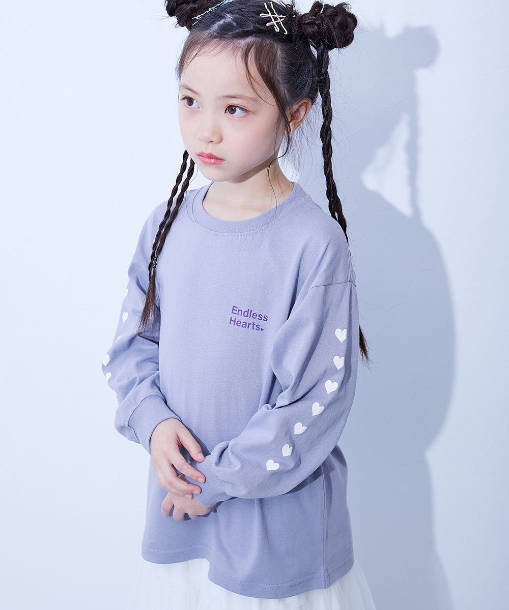 【SALE/9%OFF】devirock 綿100% デビラボ ガールズ BIGシルエットプリント袖リブ 長袖Tシャツ ロンT 25AW デビロック トップス カットソー・Tシャツ パープル ブルー グレー グリーン