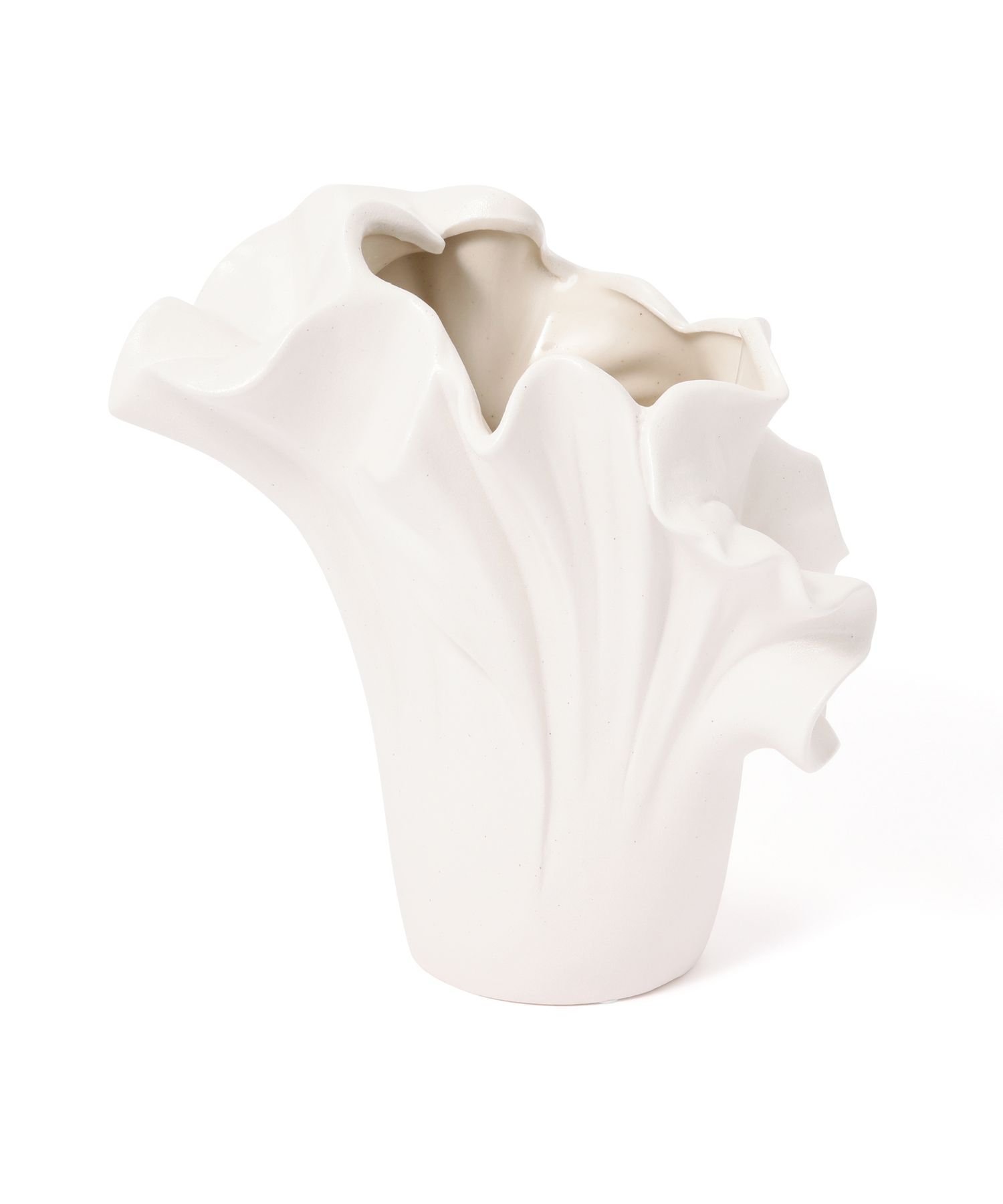 Francfranc セラミック ラッフル フラワーベース M ホワイト フランフラン インテリア・生活雑貨 フラワーベース・花瓶 ホワイト