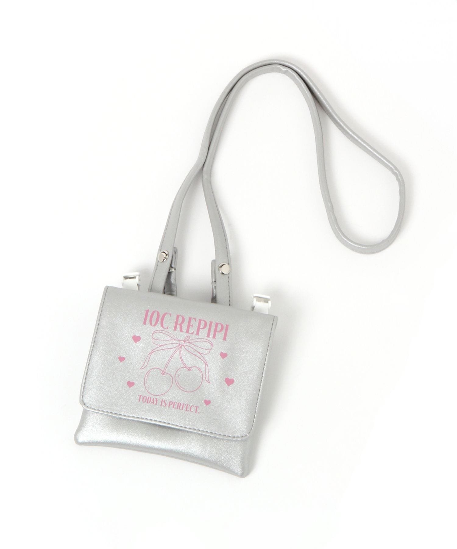 10C REPIPI 【10C REPIPI】リボンチェリーポケットポーチ レピピアルマリオ バッグ クラッチバッグ ブラック シルバー
