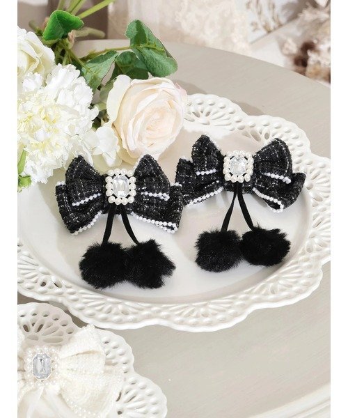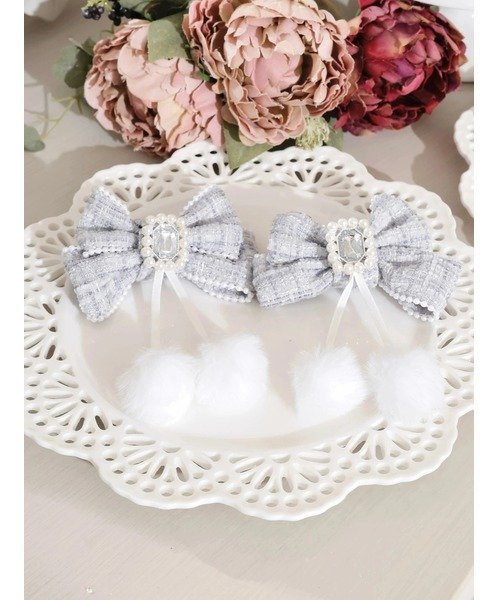 NOEMIE ツイードリボンぽんぽんツインテールクリップ ノエミー アクセサリー・腕時計 その他のアクセサリー・腕時計 ピンク