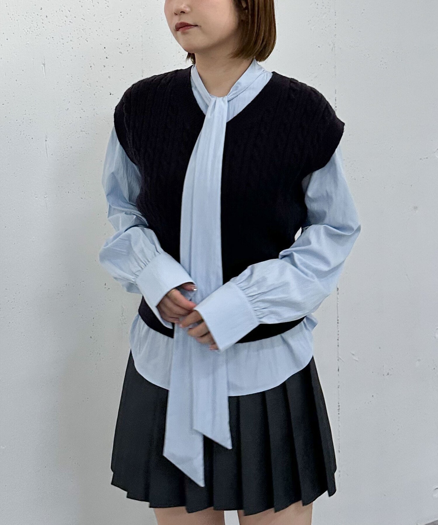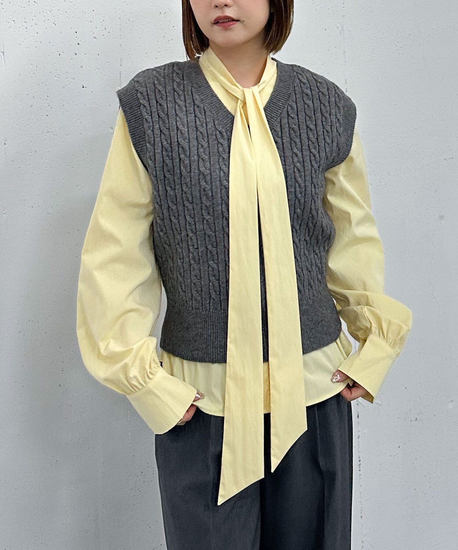 【SALE/50%OFF】archives ケーブルニットベスト*ボウブラウスSET アルシーヴ トップス アンサンブル ブラウン ネイビー グレー