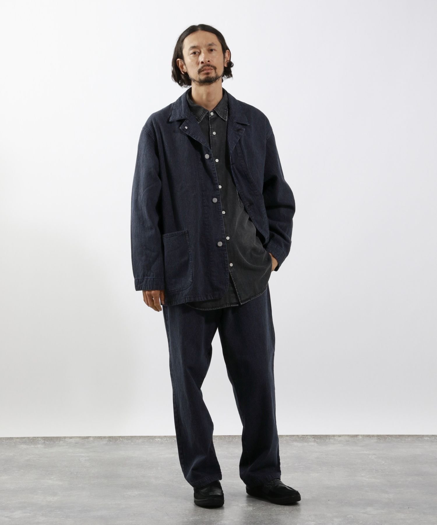 BAYFLOW(ベイフロー)【SMITH'S×BAYFLOW】別注ヒッコリージャケットーーーSMITH'S × BAYFLOW 「WORK SUITS」ブルックリン発祥の老舗ワークウェアブランド:SMITH'Sに「WORK WEAR SUITS」をテーマに別注したコラボレーション企画。昔のワークウェアに見られたジャケット見えするシンプルなカバーオールジャケットをデザインベースにしてゆるさのある現代的なシルエットで製作。製品染めによって表情を出したテイストの異なる3素材で展開します。●こちらはワークウェアの代名詞の一つであるヒッコリーストライプを黒色で染めてヴィンテージライクな雰囲気を出したモデルになります。ーーー【同シリーズのアイテムはこちら】【SMITH'S×BAYFLOW】別注ヒッコリーパンツ 581367型番:581355-19-03 QG2426【採寸】3(M)(03)着丈74 肩幅51 胸囲121 袖丈57 袖回り524(L)(04)着丈77 肩幅53.5 胸囲126 袖丈59.5 袖回り55商品のサイズについて【商品詳細】CHINA素材:綿100%サイズ:3(M)、4(L)洗濯機洗い可(ネット使用)※画面上と実物では多少色具合が異なって見える場合もございます。ご了承ください。商品のカラーについて 【予約商品について】 ※「先行予約販売中」「予約販売中」をご注文の際は予約商品についてをご確認ください。■重要なお知らせ※ 当店では、ギフト配送サービス及びラッピングサービスを行っておりません。ラッピング・ギフト配送について同時に複数の商品を注文された場合メーカー希望小売価格についてご利用ガイドBAYFLOW(ベイフロー)【SMITH'S×BAYFLOW】別注ヒッコリージャケットーーーSMITH'S × BAYFLOW 「WORK SUITS」ブルックリン発祥の老舗ワークウェアブランド:SMITH'Sに「WORK WEAR SUITS」をテーマに別注したコラボレーション企画。昔のワークウェアに見られたジャケット見えするシンプルなカバーオールジャケットをデザインベースにしてゆるさのある現代的なシルエットで製作。製品染めによって表情を出したテイストの異なる3素材で展開します。●こちらはワークウェアの代名詞の一つであるヒッコリーストライプを黒色で染めてヴィンテージライクな雰囲気を出したモデルになります。ーーー【同シリーズのアイテムはこちら】【SMITH'S×BAYFLOW】別注ヒッコリーパンツ 581367型番:581355-19-03 QG2426【採寸】3(M)(03)着丈74 肩幅51 胸囲121 袖丈57 袖回り524(L)(04)着丈77 肩幅53.5 胸囲126 袖丈59.5 袖回り55商品のサイズについて【商品詳細】CHINA素材:綿100%サイズ:3(M)、4(L)洗濯機洗い可(ネット使用)※画面上と実物では多少色具合が異なって見える場合もございます。ご了承ください。商品のカラーについて