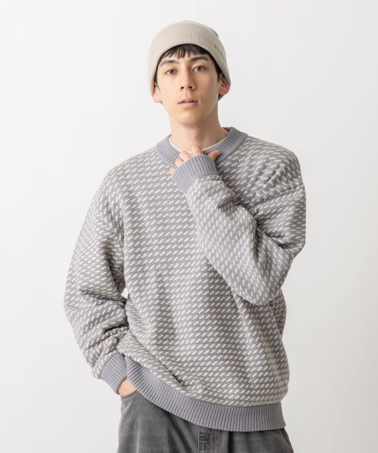L.L.Bean (M)【JAPAN EDITION】ウェイン・セーター・バーズアイ エルエルビーン トップス ニット グレー ネイビー【送料無料】