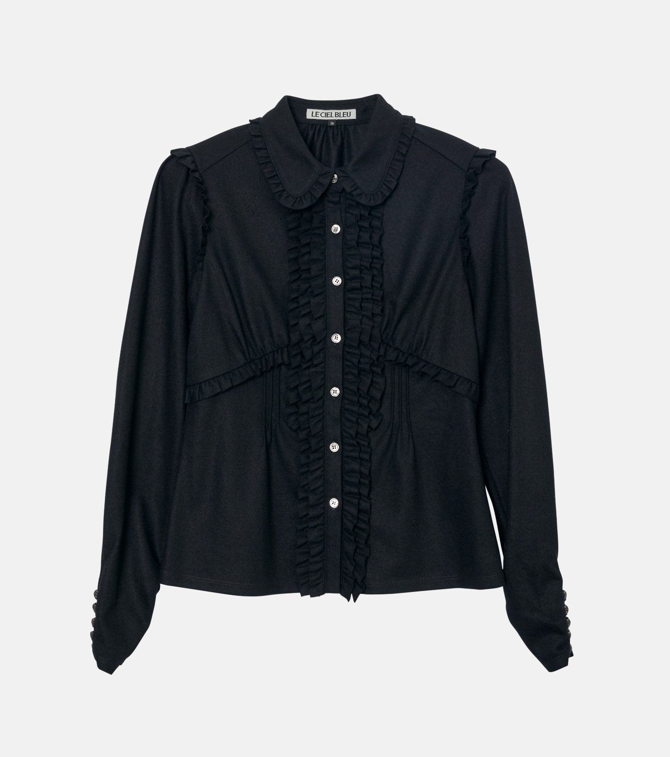 LE CIEL BLEU ジャージーシャツwフリールドディテールズ / Jersey Shirt w/Frilled Details ルシェルブルー トップス シャツ・ブラウス ブラック グレー【送料無料】