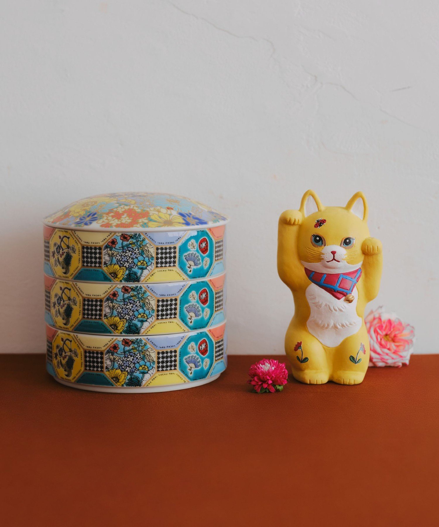 Afternoon Tea LIVING(アフタヌーンティー・リビング)九谷焼三段重/ナタリー・レテパリを拠点に活動するアーティスト、ナタリー・レテのアートをあしらった九谷焼の三段重です。石川県能美市に位置する九谷焼の窯元「青郊窯」で作られた器に、さまざまな縁起の良いモチーフをあしらった、華やかなデザインが魅力の一品です。フタ部分には、アネモネをメインモチーフに、2026年の干支「午(うま)」にちなんだ「ウマノアシガタ(馬の足形)」の花がさりげなく描かれています。ウマノアシガタは、葉の形が馬の蹄に似ていることからその名が付けられた春の野草で、黄色い可憐な花を咲かせます。転写紙を貼り付ける独自の技術により、手描きのような絵付けの風合いを実現。仕切りや小鉢を使っておせちを詰めれば、迎春の食卓を華やかに彩ります。煮しめやお肉の煮込みなどを、1段を使ってダイナミックに盛り付けるのもおすすめです。Artist|NathalieLete(ナタリー・レテ)フランス在住のイラストレーター。幸せに満ちあふれつつ、どこかシニカルさも漂う作品は世界中で人気です。食器洗浄機〇、電子レンジ〇、直火×、オーブン×電子レンジは温める程度でしたらご使用いただけます。繰り返し使うことで表面の絵柄が劣化する恐れがあります。永くお使い頂く為には手洗いを推奨します。1点ごとに柄の出方が違うことがあります。型番:JQ17-25307123-1b-1 QR8757【採寸】高さ15.3cm/直径15.5cm商品のサイズについて【商品詳細】日本製素材:磁器サイズ:-※画面上と実物では多少色具合が異なって見える場合もございます。ご了承ください。商品のカラーについてAfternoon Tea LIVING(アフタヌーンティー・リビング)九谷焼三段重/ナタリー・レテパリを拠点に活動するアーティスト、ナタリー・レテのアートをあしらった九谷焼の三段重です。石川県能美市に位置する九谷焼の窯元「青郊窯」で作られた器に、さまざまな縁起の良いモチーフをあしらった、華やかなデザインが魅力の一品です。フタ部分には、アネモネをメインモチーフに、2026年の干支「午(うま)」にちなんだ「ウマノアシガタ(馬の足形)」の花がさりげなく描かれています。ウマノアシガタは、葉の形が馬の蹄に似ていることからその名が付けられた春の野草で、黄色い可憐な花を咲かせます。転写紙を貼り付ける独自の技術により、手描きのような絵付けの風合いを実現。仕切りや小鉢を使っておせちを詰めれば、迎春の食卓を華やかに彩ります。煮しめやお肉の煮込みなどを、1段を使ってダイナミックに盛り付けるのもおすすめです。Artist|NathalieLete(ナタリー・レテ)フランス在住のイラストレーター。幸せに満ちあふれつつ、どこかシニカルさも漂う作品は世界中で人気です。食器洗浄機〇、電子レンジ〇、直火×、オーブン×電子レンジは温める程度でしたらご使用いただけます。繰り返し使うことで表面の絵柄が劣化する恐れがあります。永くお使い頂く為には手洗いを推奨します。1点ごとに柄の出方が違うことがあります。型番:JQ17-25307123-1b-1 QR8757【採寸】高さ15.3cm/直径15.5cm商品のサイズについて【商品詳細】日本製素材:磁器サイズ:-※画面上と実物では多少色具合が異なって見える場合もございます。ご了承ください。商品のカラーについて