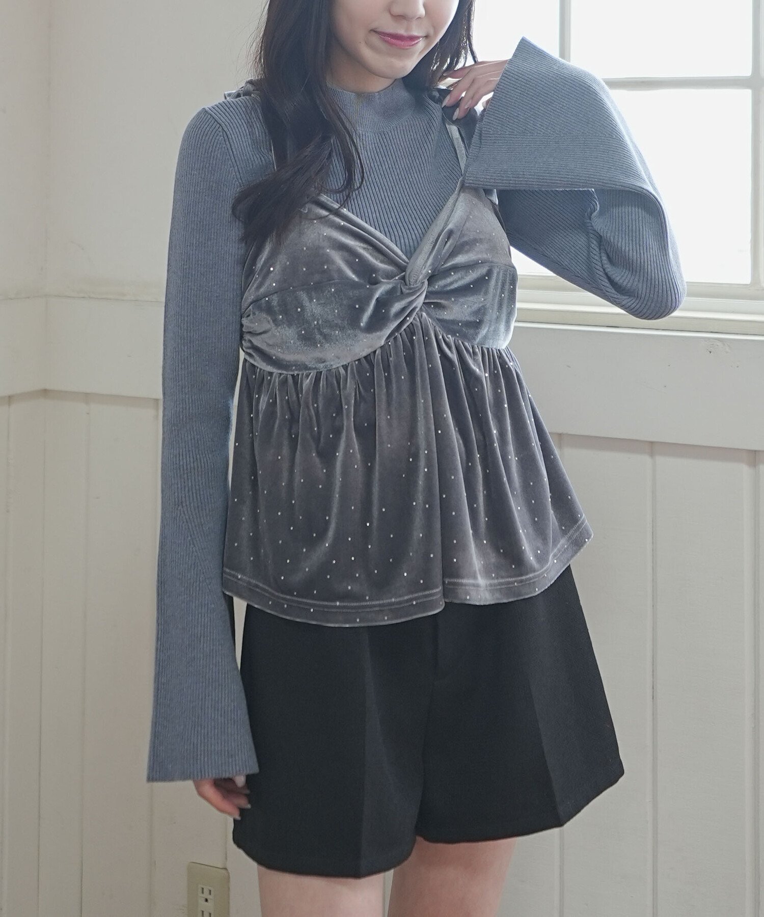 archives ラインストーンベロアビスチェ*フレアリブニットSET アルシーヴ トップス アンサンブル ブラック ブルー ホワイト ピンク【送料無料】