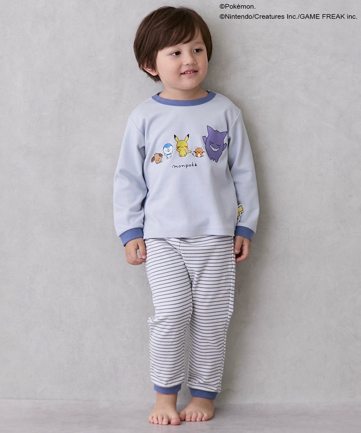 petit main 【モンポケ】スムースパジャマ ナルミヤオンライン トップス アンサンブル ホワイト ブルー