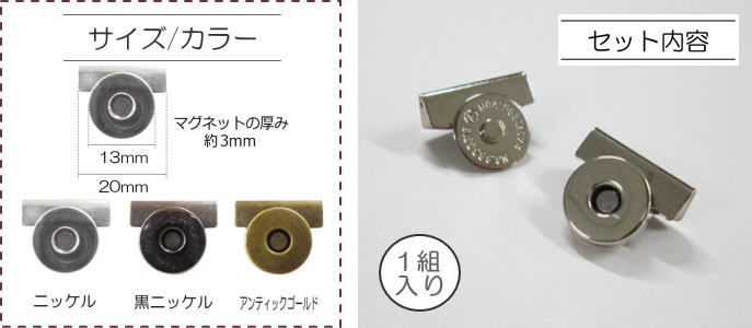 バッグに後付けできる!【かんたん取り付けマグネット】ペンチでらくらくはさむだけ!マグホック/ボタン/マグネット釦/