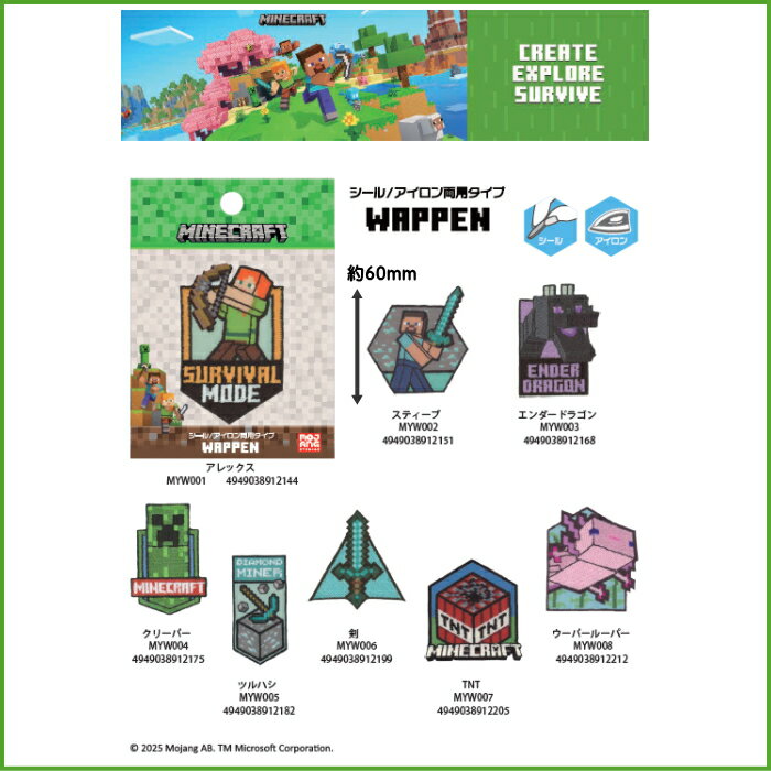 **マインクラフト ワッペン(シール&アイロン両用・大きめサイズ)** マイクラ好き必見!存在感バツグンの大きめワッペンが登場! 人気キャラクターたちがしっかり目立つサイズ感で、バッグや上履き入れ、Tシャツなどのアクセントにぴったり♪ シールとしても使えるから、すぐに貼れて手軽にカスタムOK!アイロン接着すればしっかり定着します。 ■目をひく大きめサイズ(約6cm〜) ■シールでもアイロンでも使える2WAYタイプ ■通園・通学グッズ、習い事バッグにも!,br> お子さまの持ち物を、世界でひとつだけのマイクラアイテムに変身させよう! ★サイズ サンプル画像をご参照ください