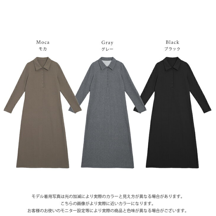 【25AW×半額クーポン】ポロ襟 リブ カットソー ワンピース 長袖 着痩せ スタイルアップ シンプル ラクチン ロングスカート レディース 2025秋冬新作 【lswpaw25-1489】【rp】【予約販売:10月30日入荷予定順次発送】【送料無料】宅込