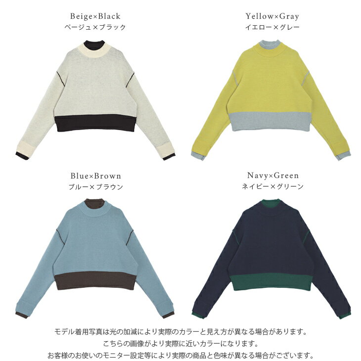 【25AW×半額クーポン】リバーシブル 2way 配色デザイン バイカラー ニットトップス レイヤード風 モックネック ドロップショルダー アウトリンキング ショート丈 長袖 レディース 2025秋冬新作 【lstpaw25-1644】【予約販売:11月6日入荷予定順次発送】【送料無料】宅込