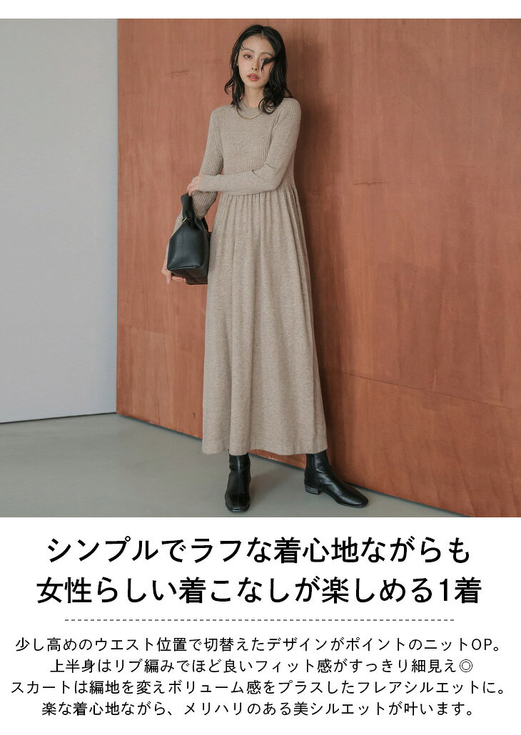 【半額クーポン対象】リブ切替え ニット ワンピース 着痩せ スタイルアップ 美シルエット レイヤード 着回しアイテム ラクチン 長袖 レディース おすすめ おしゃれ 2025秋冬新作 【lswpaw25-1754】【予約販売:12月4日入荷予定順次発送】【送料無料】宅込