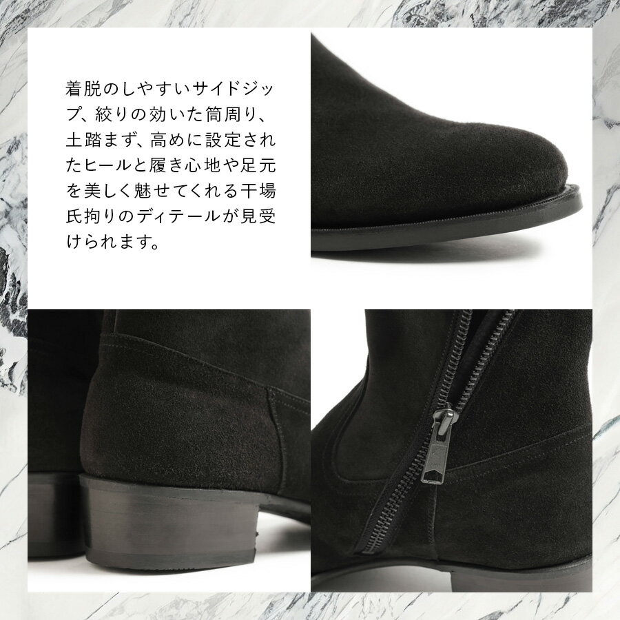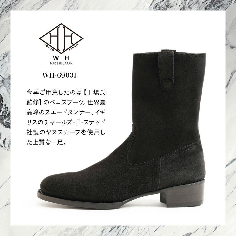 【干場氏監修】WH ダブルエイチ ヒロシツボウチ×干場義雅 サイドジップ ブーツ スエード ヤヌス カーフ ペコス WH-6903J BLACK ブラック