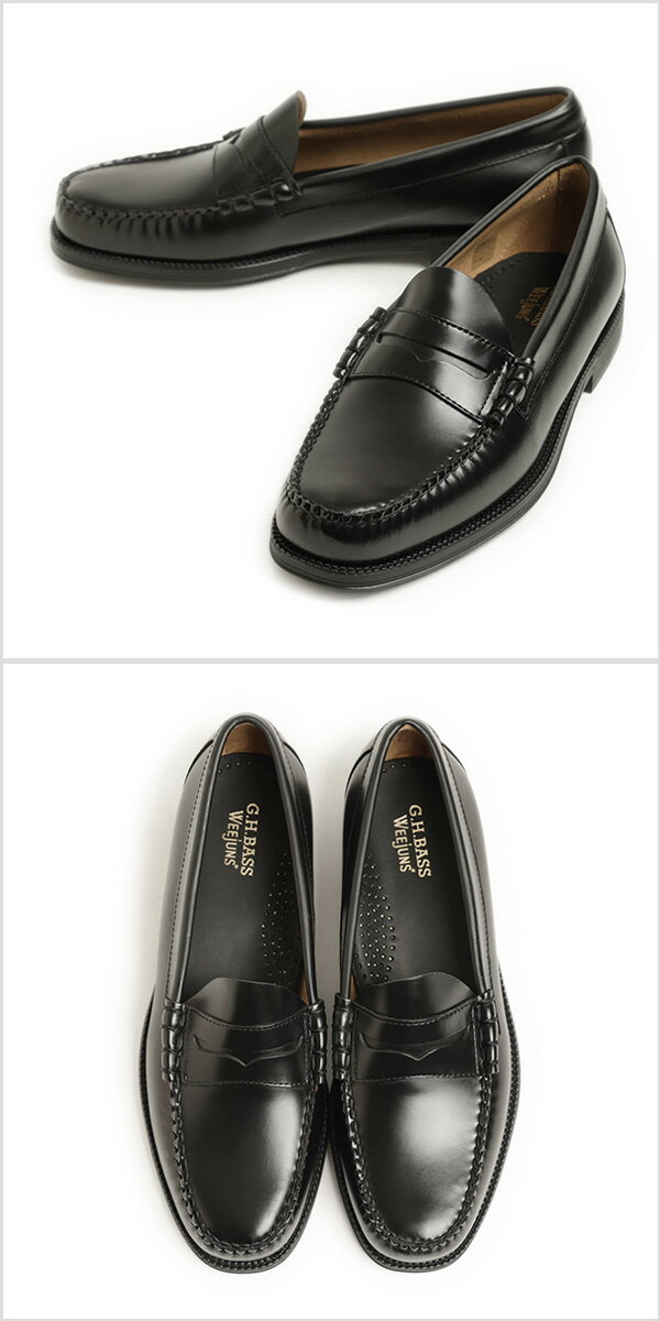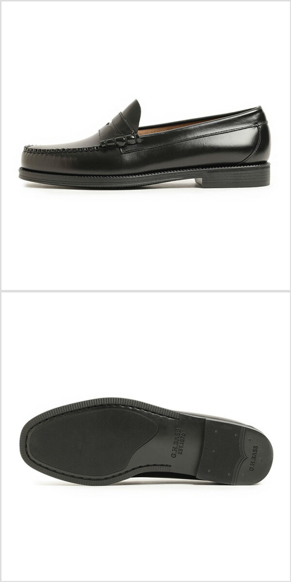 G.H.BASS ジーエイチバス weejuns ウィージャンズ ローファー モカシン スリッポン レザー ハイシャイン ラバーソール ビーフロール LARSON BA11711D BLACK ブラック MID BROWN ブラウン