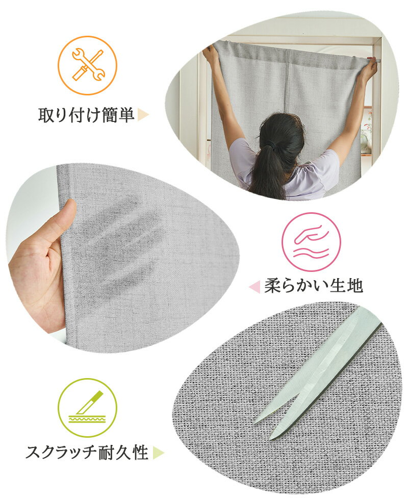 商品情報サイズ72*120cm72*150cm72*170cm72*200cm72*220cm85*120cm85*150cm85*170cm85*200cm85*220cm90*120cm90*150cm90*170cm90*200cm90*220cm100*120cm100*150cm100*170cm100*200cm100*220cm120*120cm120*150cm120*170cm120*200cm120*220cm材質綿麻&ポリエステル色グレー、ベージュ、オフホワイト、ブルー商品説明ナチュラルで快適な空間づくりを叶える「半遮光のれんカーテン」こちらののれんカーテンは、程よい半遮光効果で自然光を優しく取り込みながらも、プライバシーを守ってくれる優れものです。明るすぎず暗すぎない絶妙なバランスが、お部屋全体を優しい光で包み、気分も明るくしてくれます。リビングや玄関、寝室など、さまざまなシーンでお使いいただけます。機能性とデザイン性を兼ね備えた素材リネンと絹麻を彷彿とさせる風合いが、上質で温かみのある雰囲気を演出。柔らかな肌触りで、お部屋のインテリアをぐっと引き立てます。UVカット効果で、紫外線からお部屋とご家族を守ります。断熱・保温効果で一年中快適に高密度の生地が室外の冷気や暖気を遮断。夏は涼しい室内環境を保ち、冬は暖かな空気を逃がしません。光熱費の節約にもつながる、省エネ効果の高いアイテムです。簡単取り付けでお部屋の印象ががらりと変わります付属の突っ張り棒を使えば、ドリルや工具は不要。お一人でも短時間で簡単に設置可能です。洗濯機で丸洗いOK!清潔を保てます汚れたら洗濯機で簡単にお手入れ可能。常に清潔な状態を保てるので、キッチンや洗面所、玄関など、多様な場所でご使用いただけます。多彩な使い方で大活躍リビングや部屋の間仕切り玄関やドアの目隠しキッチン周りのすっきり収納階段周りの冷暖房効率アップオフィスのプライベート空間確保和室でも洋室でも違和感なくマッチするナチュラルなデザイン。機能性とデザイン性を兼ね備えたこちらの商品で、快適な空間づくりを始めてみませんか?キーワードレースカーテン, 洗濯機で丸洗いOK, リネン風 麻素材 カーテン, 間仕切り 目隠し カーテン, おしゃれ インテリア のれん, コンパクト つっぱり棒付属, リビング 間仕切りカーテン, 玄関 目隠し 帘, 部屋 仕切り カーテン, DIY 簡単 インテリア, 遮光 カーテン おすすめ, 防寒 対策 カーテン, 通気性 良い カーテン, 軽量 スタイリッシュ のれん, ポリエステル100% カーテン, 日本製 のれん カーテン, 遮光 断熱 カーテン, 省エネ 対策 グッズ, リビング カーテン おしゃれ, 窓用 断熱 カーテン, ドア 目隠し カーテン, キッチン カーテン おしゃれ, 洗面所 カーテン, 浴室 脱衣所 カーテン, オフィス 仕切り カーテン, 賃貸 でも 取り付け 簡単【sale~12%offクーポン】のれん 間仕切りカーテン 綿麻 断熱 遮像 柔らかい 突っ張り棒付き おしゃれ 目隠し 透け感 暖簾 ロング 無地 和風 シンプル ナチュラル 北欧 仕切りカーテン 階段 半間のれん ドアカーテン 脱衣場 冷気カーテン 断熱カーテン 防寒 薄地 目隠し 外から見えにくい 透けない ストライプ リネン 出窓 オーダーカーテン 目隠し 引っ越し ウォッシャブル リビング 寝室 インテリア 遮像 5