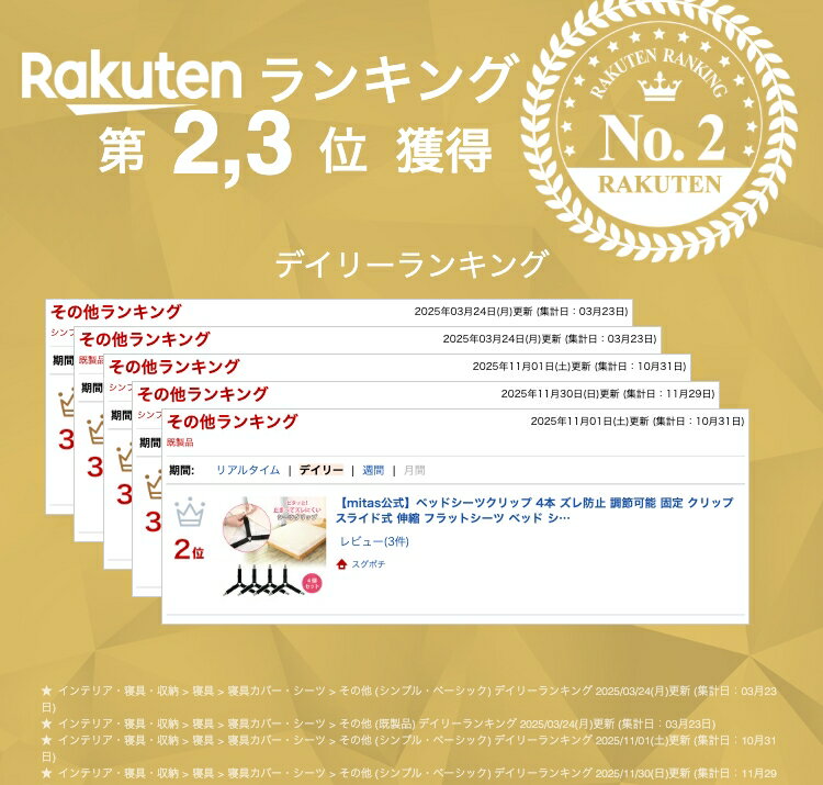 【mitas公式】ベッドシーツクリップ 4本 ズレ防止 調節可能 固定 クリップ スライド式 伸縮 フラットシーツ ベッド シーツ 布団 ソファー 滑り止め 調整 コーナー止め 三角ゴムバンド シールホルダー 寝具