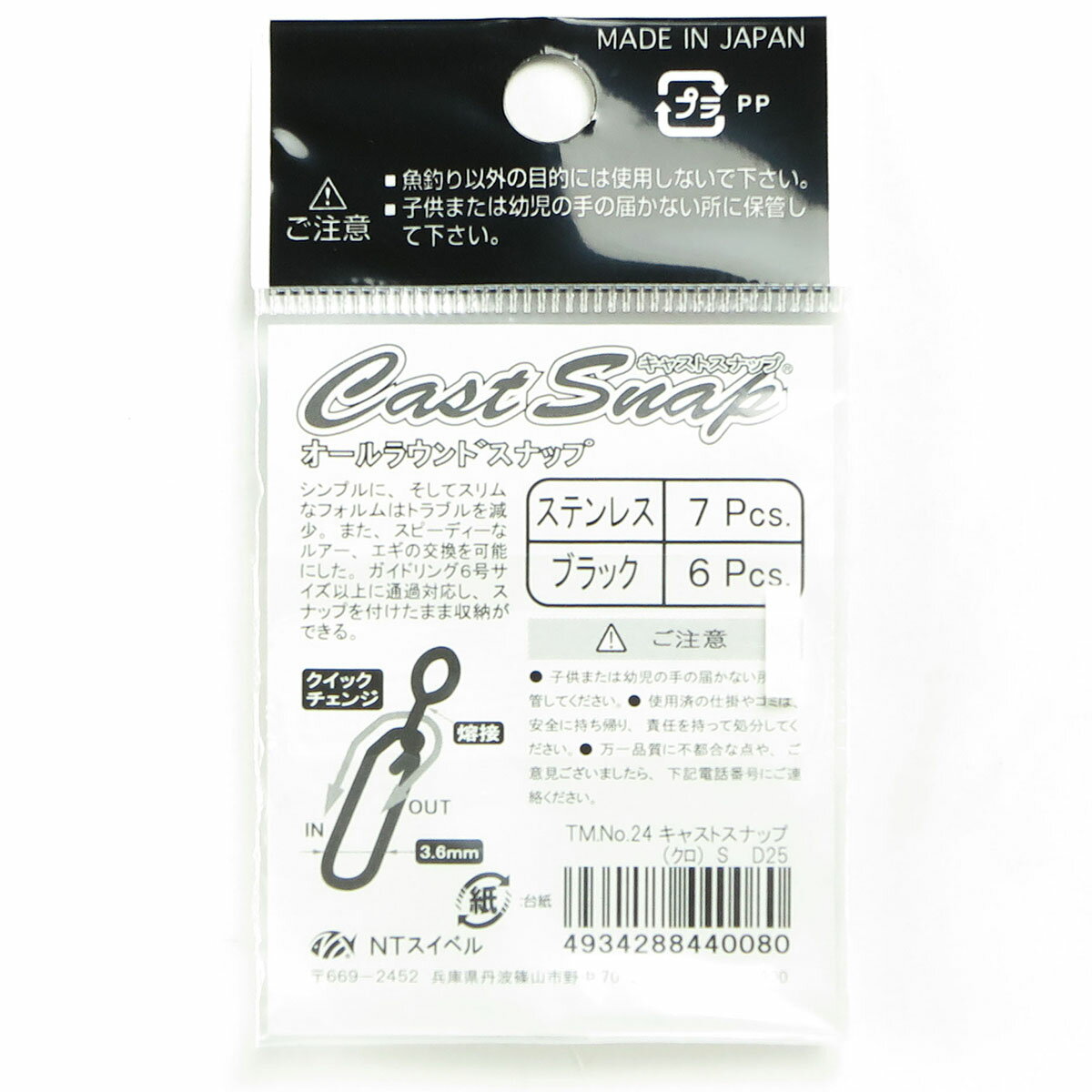 【 まとめ買い17個セット 】 「NTスイベル テンマウス キャストスナップ クロ #S 6個入」 【 送料無料 】