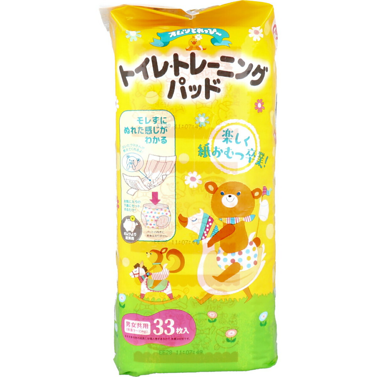 【品名】乳幼児用おむつ【適用】・1才6ヶ月以上のお子さまに・体重9〜15kg・男女兼用【素材】表面材:レーヨン、ポリプロピレン不織布吸収材:高分子吸水材、線状パルプ、吸収紙防水材:ポリエチレンフィルム止着材:スチレン系エラストマー合成樹脂など伸縮材:ポリウレタン結合材:スチレン系エラストマー合成樹脂など外装材:ポリエチレン【トイレ・トレーニングの進め方】★はじめる目安(1)おしっこの間隔がく(約2時間おき)(2)自由に歩けるようになる(3)簡単な言葉が理解できるようになる★トイレ・トレーニングのポイント(1)おしっこを気づかせてあげる(2)お子さまのやる気をサポートしてあげる※あせらず楽しくトレーニングをすすめましょう。【注意】・パッドはおしっこ1.5回分を目安にしていますので、就寝時や長時間使用するとモレることがあります。・装着の仕方を誤るとモレることがあります。しっかり広げてご使用ください。・正しく装着してもズレたり隙間があいたりする場合は、ゴムがしっかりしてズレにくい布製トレーニングパンツとの併用をおすすめします。・お肌に合わないときはご使用を中止し、医師にご相談ください。・お子さまの手の届かないところに保管し、使用後はぐに処分してください。※おしっこ約1.5回分(1回80mL)の吸収量がありますが、ぬれたら必ず交換してください。★使用上の注意・汚れたパッドは早くとりかえてください。・テープは直接お肌につけないでください。・誤って口に入れたり、のどに詰まらせることのないよう保管場所に注意し、使用後はすぐに処理してください。★使用後の処理・パッドに付着した大便はトイレに始末してください。・汚れた部分を内側にして丸めて不衛生にならないように処理してください。・トイレにパッドを捨てないでください。・使用後の廃棄方法はお住いの地域のルールに従ってください。・外出時に使ったパッドは持ち帰りましょう。★保管上の注意・開封後はほこりや虫が入らないよう、衛生的に保管してください。【品名】乳幼児用おむつ【適用】・1才6ヶ月以上のお子さまに・体重9〜15kg・男女兼用【素材】表面材:レーヨン、ポリプロピレン不織布吸収材:高分子吸水材、線状パルプ、吸収紙防水材:ポリエチレンフィルム止着材:スチレン系エラストマー合成樹脂など伸縮材:ポリウレタン結合材:スチレン系エラストマー合成樹脂など外装材:ポリエチレン【トイレ・トレーニングの進め方】★はじめる目安(1)おしっこの間隔がく(約2時間おき)(2)自由に歩けるようになる(3)簡単な言葉が理解できるようになる★トイレ・トレーニングのポイント(1)おしっこを気づかせてあげる(2)お子さまのやる気をサポートしてあげる※あせらず楽しくトレーニングをすすめましょう。【注意】・パッドはおしっこ1.5回分を目安にしていますので、就寝時や長時間使用するとモレることがあります。・装着の仕方を誤るとモレることがあります。しっかり広げてご使用ください。・正しく装着してもズレたり隙間があいたりする場合は、ゴムがしっかりしてズレにくい布製トレーニングパンツとの併用をおすすめします。・お肌に合わないときはご使用を中止し、医師にご相談ください。・お子さまの手の届かないところに保管し、使用後はぐに処分してください。※おしっこ約1.5回分(1回80mL)の吸収量がありますが、ぬれたら必ず交換してください。★使用上の注意・汚れたパッドは早くとりかえてください。・テープは直接お肌につけないでください。・誤って口に入れたり、のどに詰まらせることのないよう保管場所に注意し、使用後はすぐに処理してください。★使用後の処理・パッドに付着した大便はトイレに始末してください。・汚れた部分を内側にして丸めて不衛生にならないように処理してください。・トイレにパッドを捨てないでください。・使用後の廃棄方法はお住いの地域のルールに従ってください。・外出時に使ったパッドは持ち帰りましょう。★保管上の注意・開封後はほこりや虫が入らないよう、衛生的に保管してください。