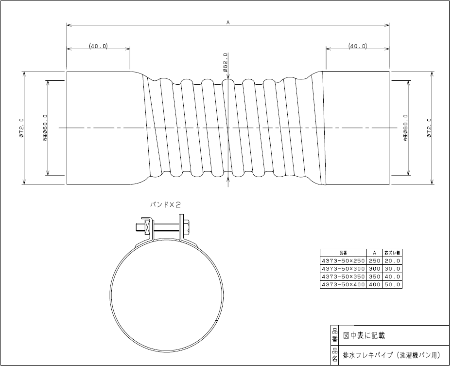 カクダイ,排水フレキパイプ,バンド接合(呼び50mm,長さ300mm)洗濯機トラップ用,4373-50×300